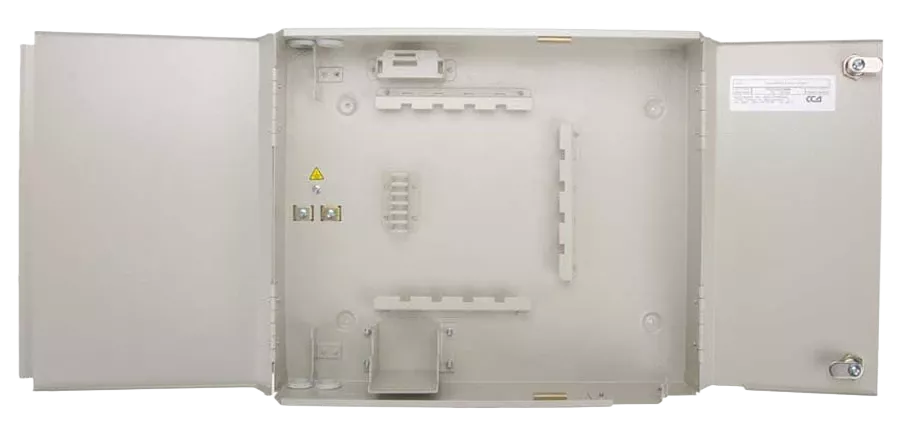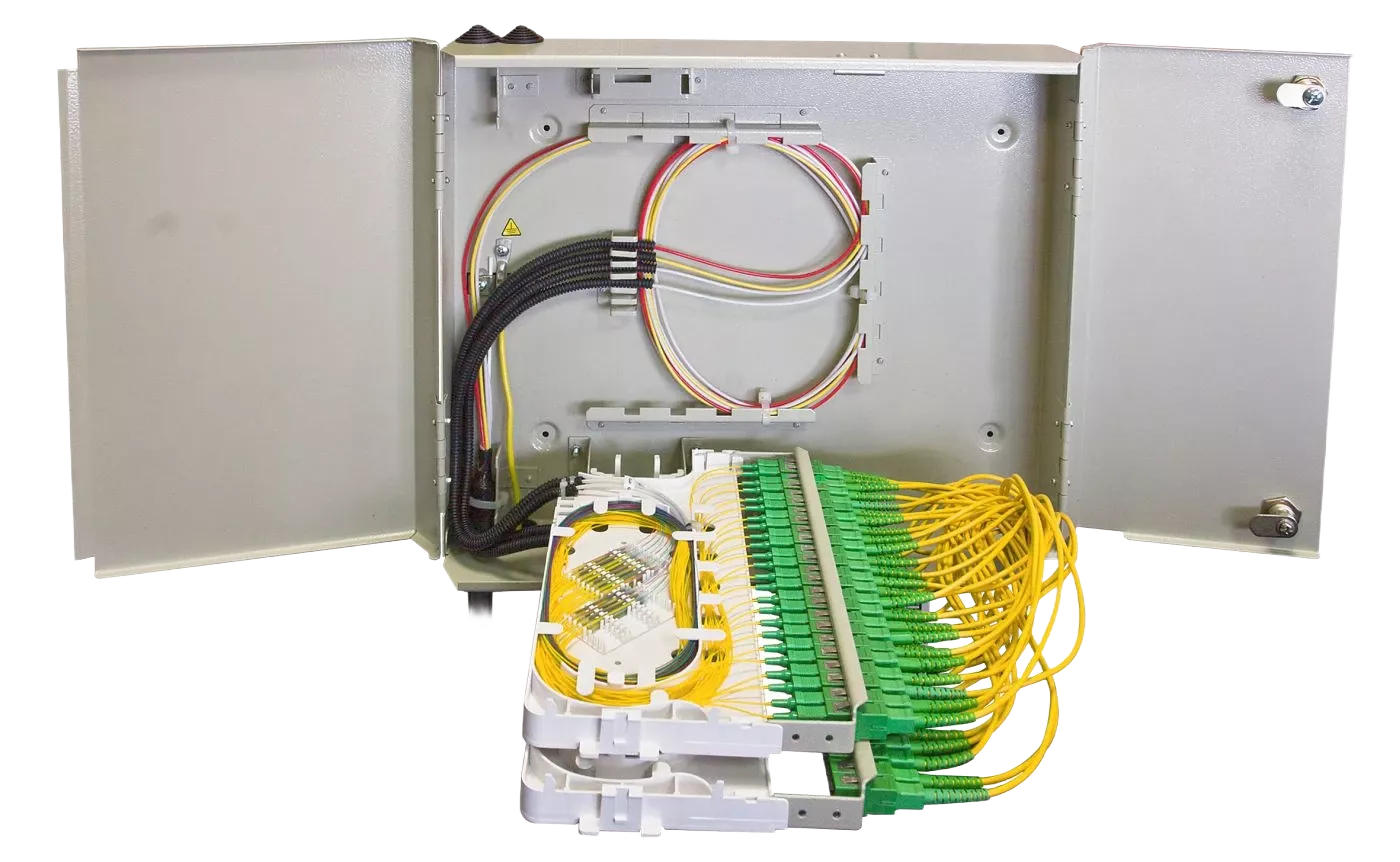 Кросс ШКОН-К-64(2)-48SC/APC содержит два кроссовых модуля общей емкостью до 48 волокон.