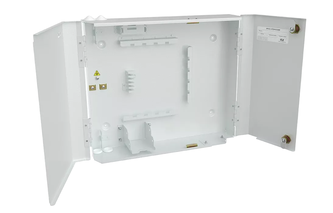 Кросс ШКОН-К-64(2) (корпус) допускает установку до 2х кроссовых модулей общей емкостью до 48 портов FC, 64 SC или 96 LC.