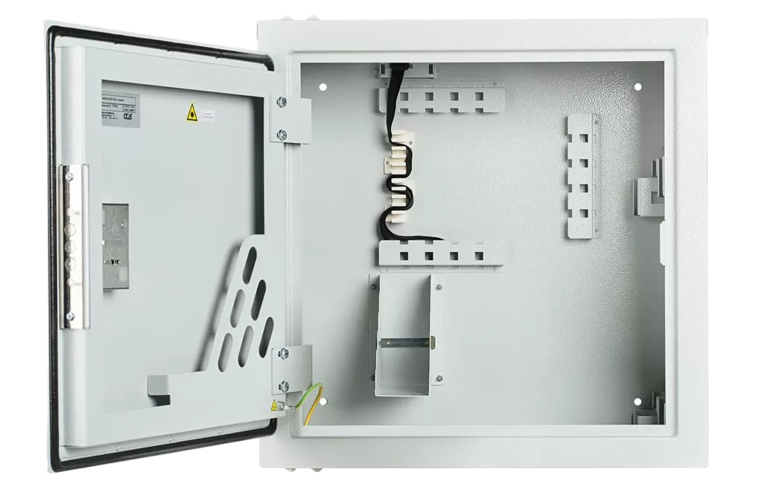 В шкафу предусмотрены несколько монтажных зон. В зоне ввода оптические кабели разделываются и фиксируются. Далее волокна в транспортных трубках поступают в зону монтажа на соответствующий кроссовый модуль. Планарные оптические разветвители устанавливаются в специальные контейнеры на правой боковой стенке шкафа.