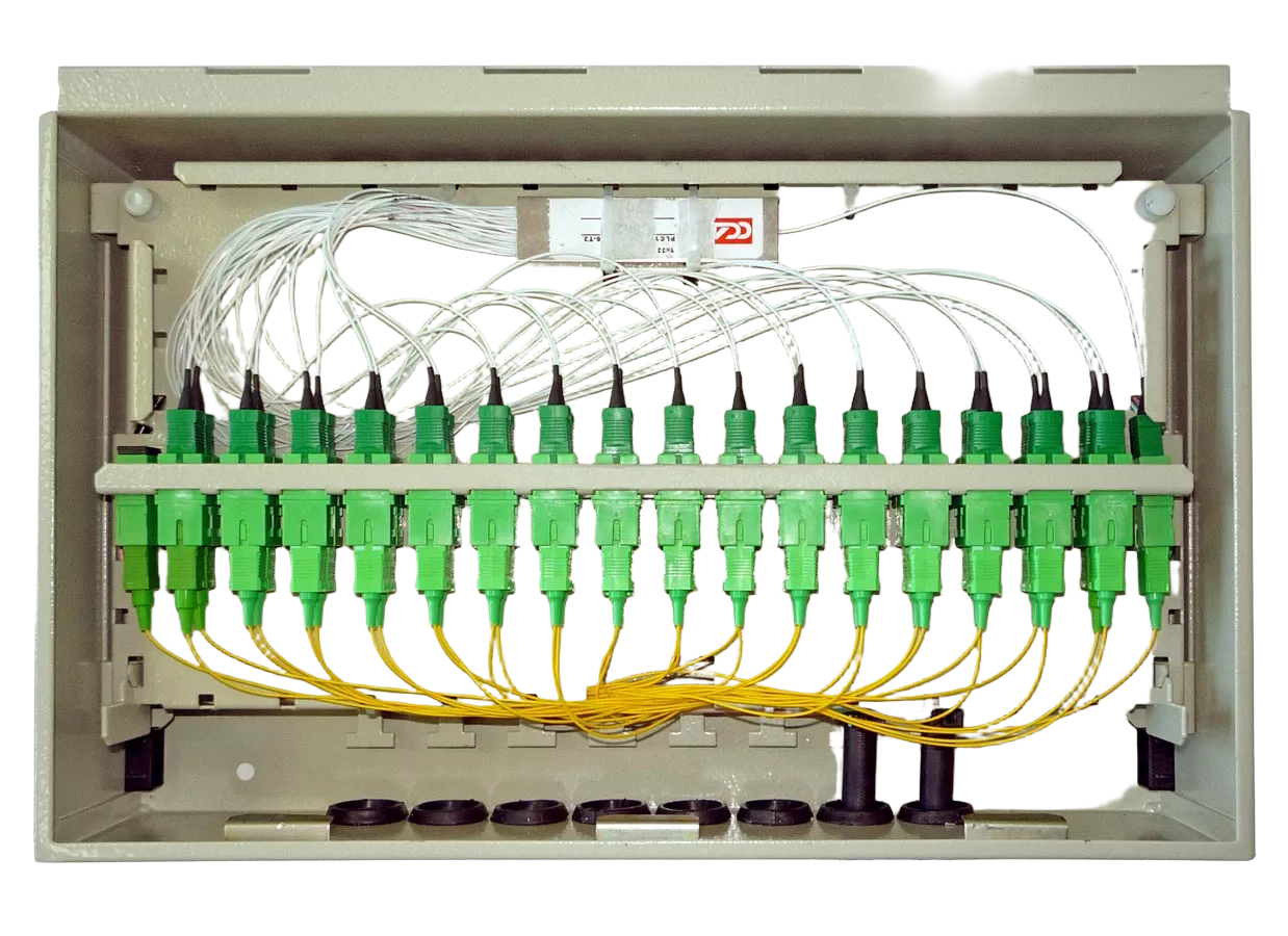 Оптические PLC разветвители 1х4, 1х8 в комплект поставки не входят и приобретаются отдельно.