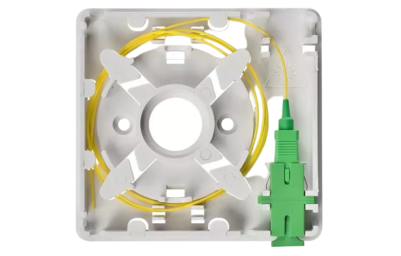 Оптический кабель разделывается и фиксируется на основании корпуса. Волокно сваривается с пигтейлом, КДЗС закрепляется в ложементе. Возможно использование механических соединителей типа Fibrlok. Адаптер устанавливается в одно из посадочных мест на основании корпуса.