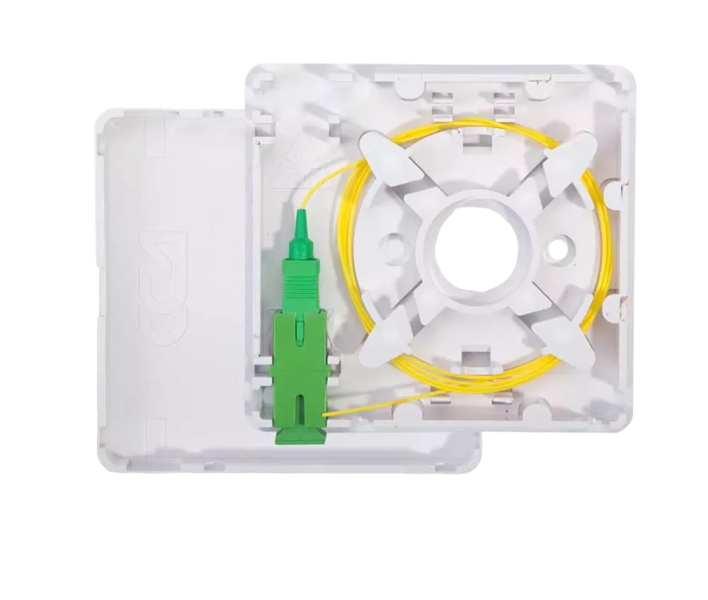 Оптический кабель разделывается и фиксируется на основании корпуса. Волокно сваривается с пигтейлом, КДЗС закрепляется в ложементе. Возможно использование механических соединителей типа Fibrlok. Адаптер устанавливается в одно из посадочных мест на основании корпуса.