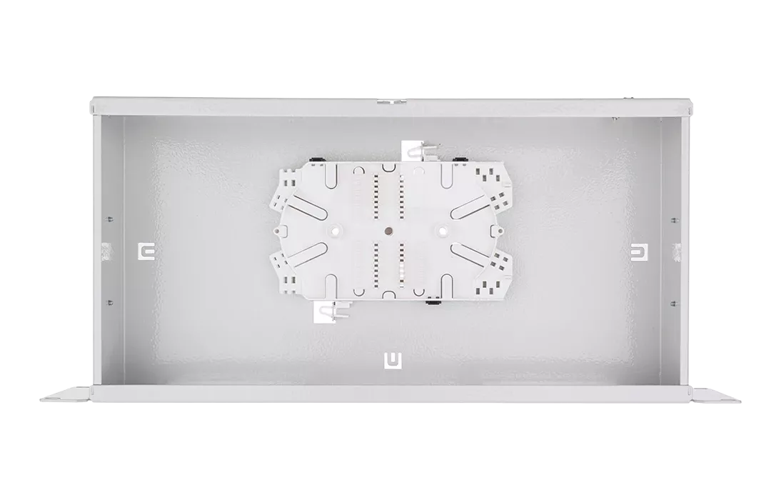Крепление кабеля по оболочке осуществляется металлическим хомутом и/или нейлоновыми стяжками, на Т-образном лепестке. Центральный силовой элемент крепится при помощи металлической скобы. Сменные пластиковые планки на 4 и 8 отверстий обеспечивают установку адаптеров-розеток различных типов: FC, SC, ST, дуплекс LC.