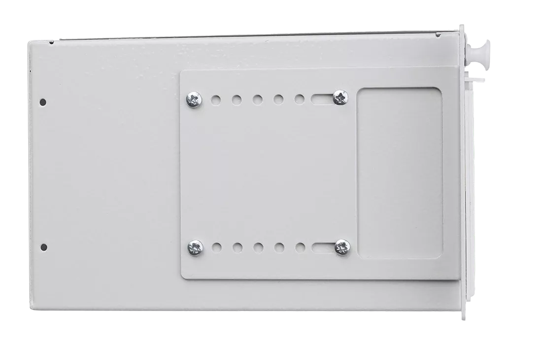 Крепление кабеля по оболочке осуществляется металлическим хомутом и/или нейлоновыми стяжками, на Т-образном лепестке. Центральный силовой элемент крепится при помощи металлической скобы. Сменные пластиковые планки на 4 и 8 отверстий обеспечивают установку адаптеров-розеток различных типов: FC, SC, ST, дуплекс LC.