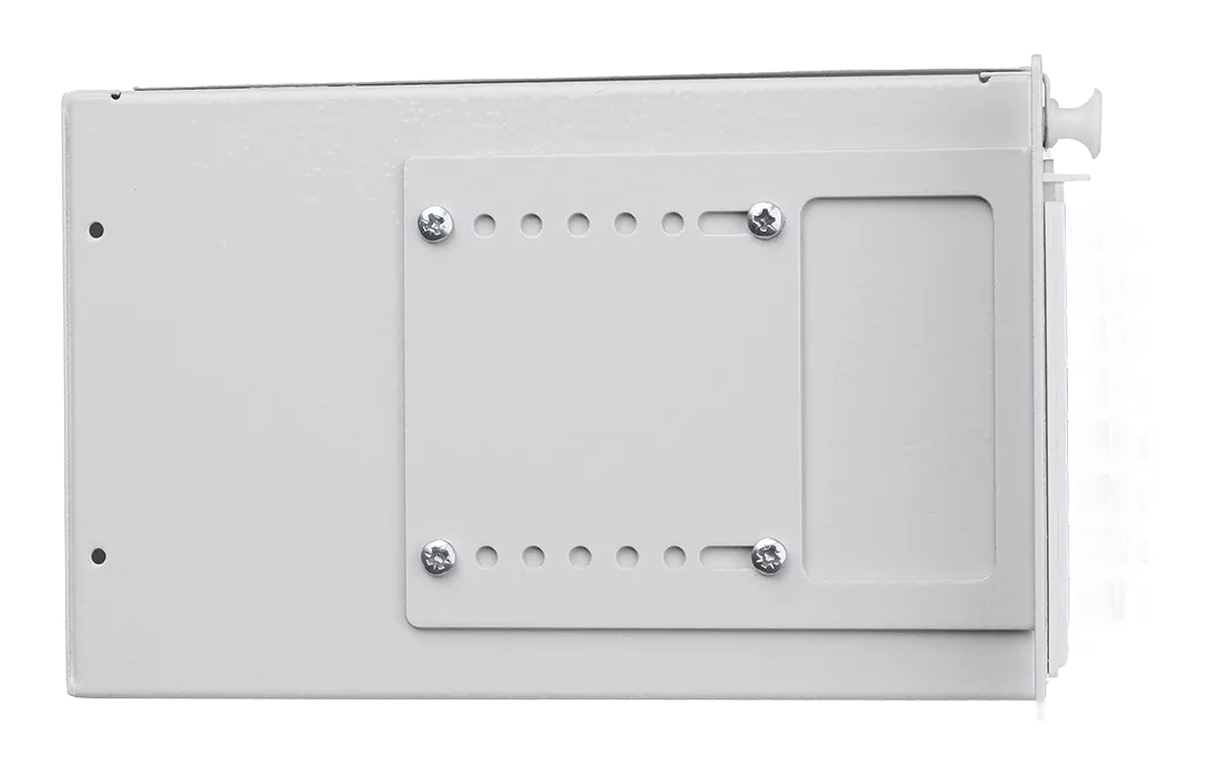 Крепление кабеля по оболочке осуществляется металлическим хомутом и/или нейлоновыми стяжками, на Т-образном лепестке. Центральный силовой элемент крепится при помощи металлической скобы. Сменные пластиковые планки на 4 и 8 отверстий обеспечивают установку адаптеров-розеток различных типов: FC, SC, ST, дуплекс LC.