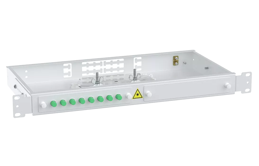 Предназначен для установки в стойки 19'', 23'', ETSI. Крепление кабеля по оболочке осуществляется металлическим хомутом и/или нейлоновыми стяжками, на Т-образном лепестке. Центральный силовой элемент крепится при помощи металлической скобы. Сменные планки на 8, 12 или 16 отверстий обеспечивают установку адаптеров-розеток различных типов: FC, SC, ST, дуплекс LC. Для кроссов данной серии имеются также сменные планки на 8, 12 и 16 дуплексных адаптеров SC.