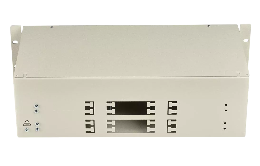 Предназначен для установки в стойки 19'', 23'', ETSI. Крепление кабеля по оболочке осуществляется металлическим хомутом и/или нейлоновыми стяжками, на Т-образном лепестке. Центральный силовой элемент крепится при помощи металлической скобы. Сменные планки на 8, 12 или 16 отверстий обеспечивают установку адаптеров-розеток различных типов: FC, SC, ST, дуплекс LC. Для кроссов данной серии имеются также сменные планки на 8, 12 и 16 дуплексных адаптеров SC.