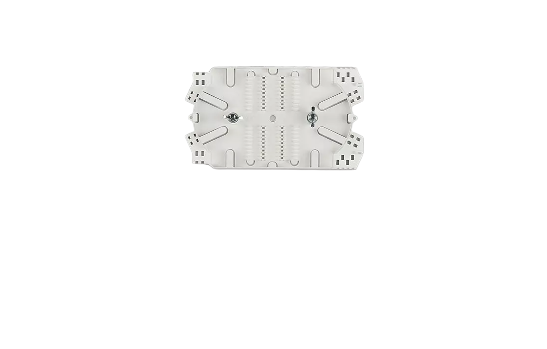 Крепление кабеля по оболочке осуществляется металлическим хомутом и/или нейлоновыми стяжками, на специализированном кабельном вводе, который крепиться на задней стенке корпуса. Центральный силовой элемент ОК крепится при помощи металлической скобы. Сменные металлические планки на 8 или 4 отверстий обеспечивают установку адаптеров-розеток различных типов: FC, SC, ST, дуплекс LC. Комплектуется съемной полкой-органайзером.