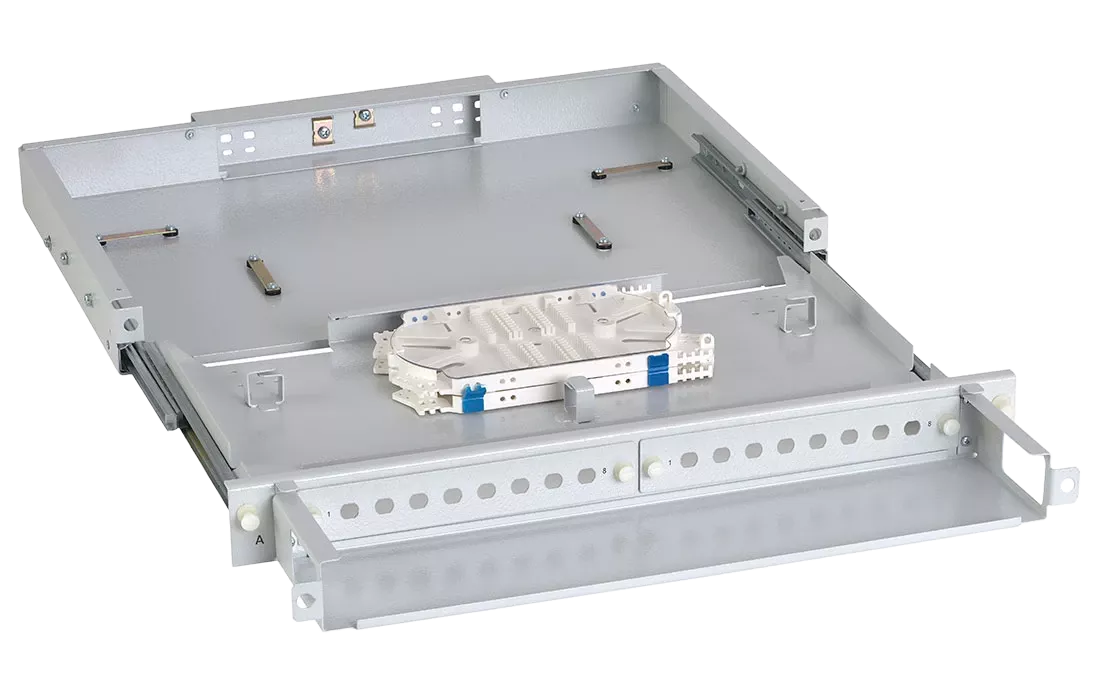 Кросс имеет выдвижную оптическую полку, что облегчает монтаж и последующее обслуживание. Для защиты патчкордов, подключаемых к розеткам кросса, корпус оснащён полкой-органайзером с защитным пластиковым экраном сверху. Подключаемые патчкорды можно вывести через специальные окна с левой и правой стороны кросса.