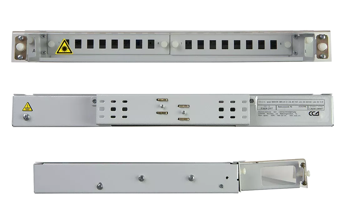 Кросс имеет выдвижную оптическую полку, что облегчает монтаж и последующее обслуживание. Для защиты патчкордов, подключаемых к розеткам кросса, корпус оснащён полкой-органайзером с защитным пластиковым экраном сверху. Подключаемые патчкорды можно вывести через специальные окна с левой и правой стороны кросса.