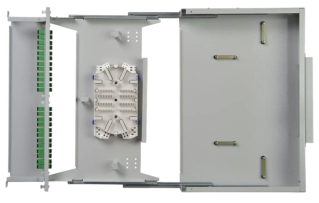 Кросс имеет выдвижную оптическую полку, что облегчает монтаж и последующее обслуживание. Для защиты патчкордов, подключаемых к розеткам кросса, корпус оснащён полкой-органайзером с защитным пластиковым экраном сверху. Подключаемые патчкорды можно вывести через специальные окна с левой и правой стороны кросса.