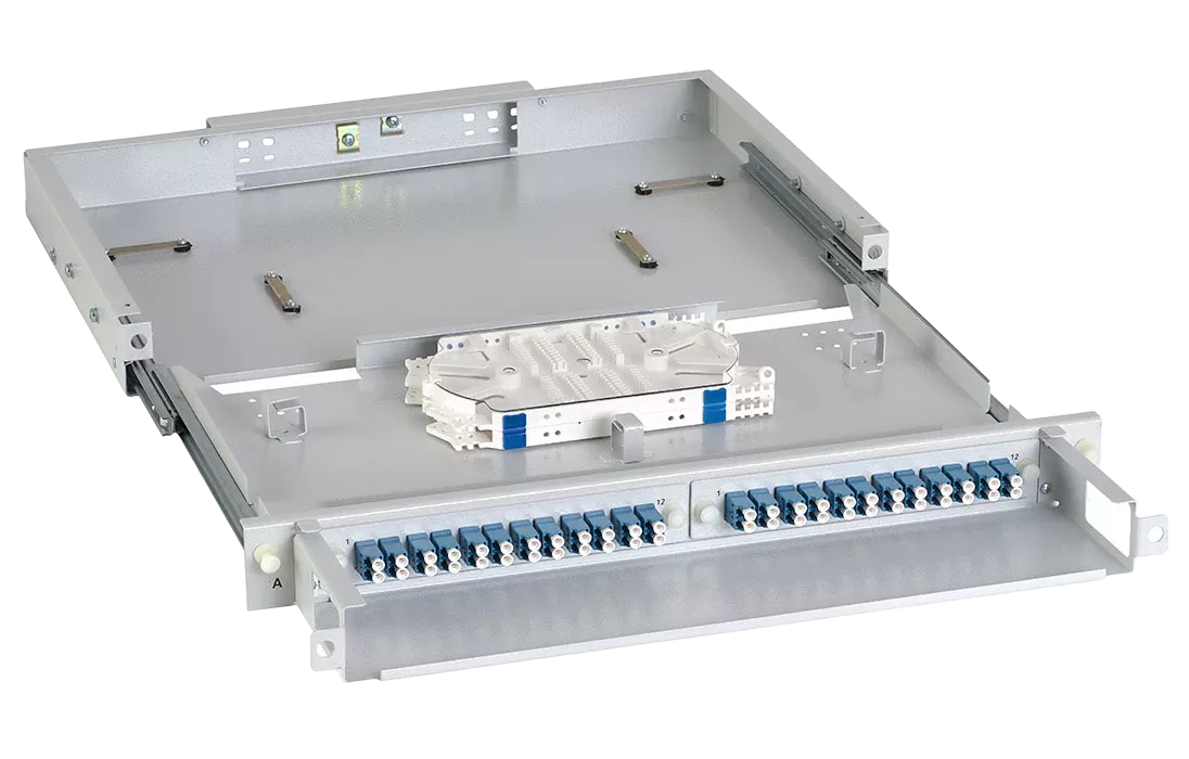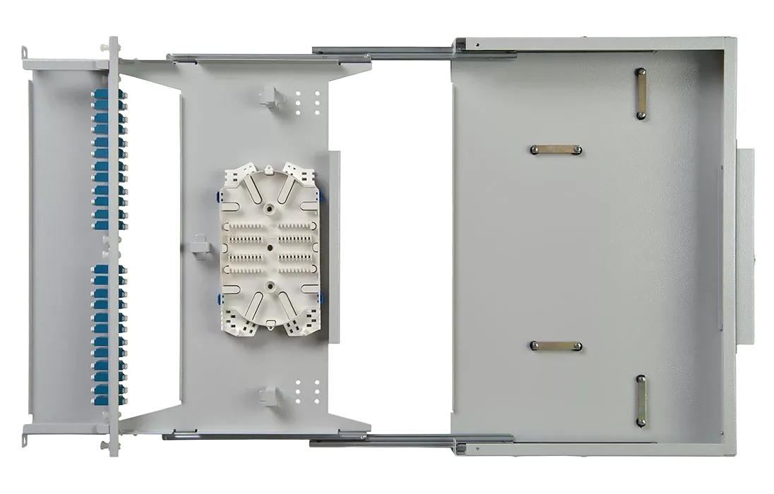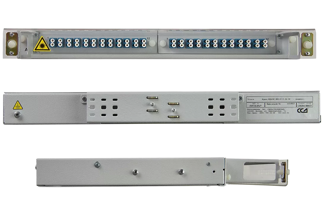 Кросс имеет выдвижную оптическую полку, что облегчает монтаж и последующее обслуживание. Для защиты патчкордов, подключаемых к розеткам кросса, корпус оснащён полкой-органайзером с защитным пластиковым экраном сверху. Подключаемые патчкорды можно вывести через специальные окна с левой и правой стороны кросса.