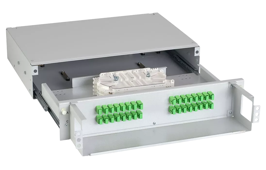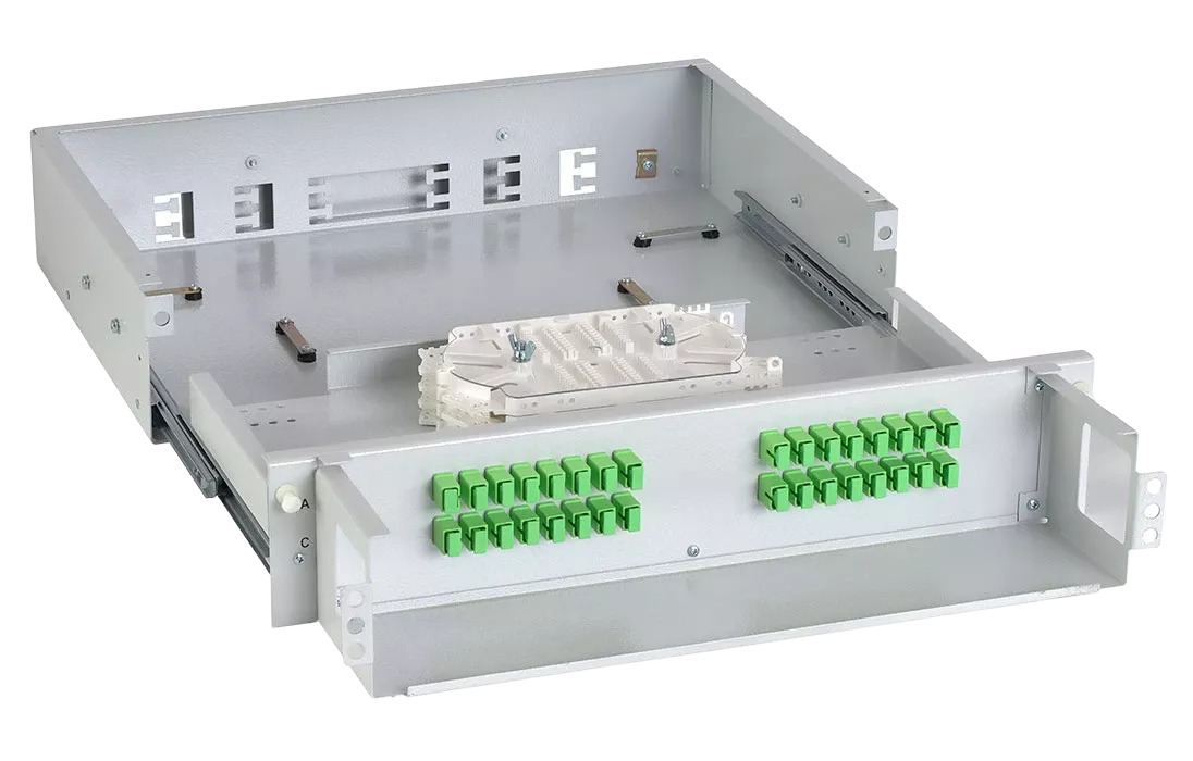 Кросс имеет выдвижную оптическую полку, что облегчает монтаж и последующее обслуживание. Для защиты патчкордов, подключаемых к розеткам кросса, корпус оснащён полкой-органайзером с защитным пластиковым экраном сверху. Подключаемые патчкорды можно вывести через специальные окна с левой и правой стороны кросса.