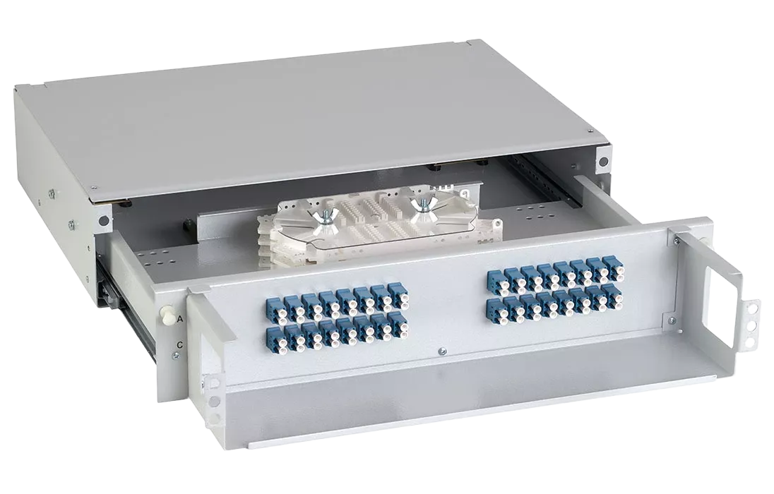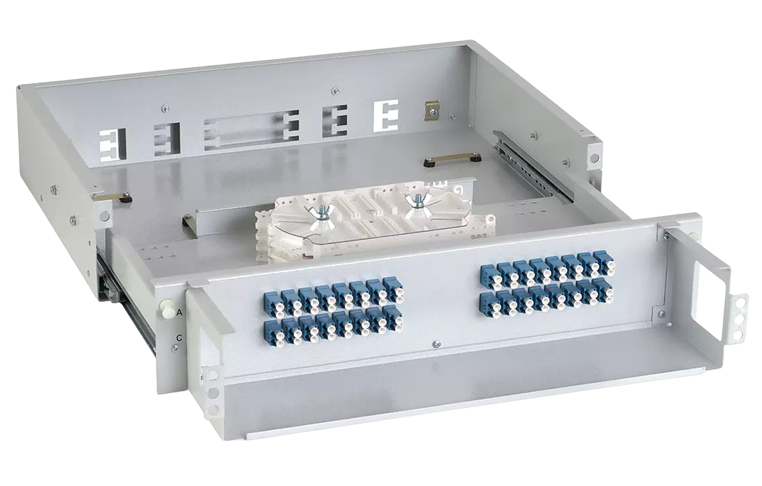Кросс имеет выдвижную оптическую полку, что облегчает монтаж и последующее обслуживание. Для защиты патчкордов, подключаемых к розеткам кросса, корпус оснащён полкой-органайзером с защитным пластиковым экраном сверху. Подключаемые патчкорды можно вывести через специальные окна с левой и правой стороны кросса.
