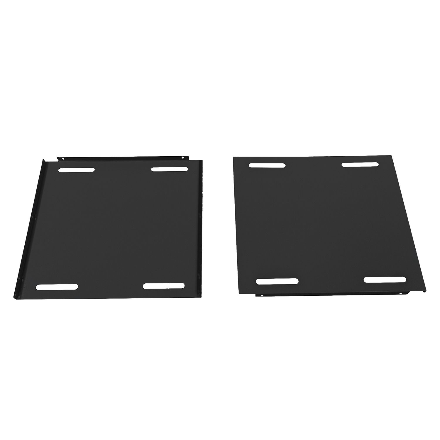 Двухрамные стойки состоят из двух сборных рам, соединяемых между собой регулируемыми по глубине профилями (траверсами). Позволяют закреплять глубокое оборудование на 4 точки крепления (2 на передней раме 2 на задней).