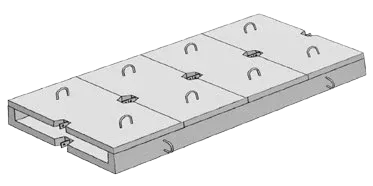 Крышка имеет внутреннюю арматуру – экран, выполненный из стального арматурного прутка в виде сетки с выводами из бетона, для соединения экранов соседних лотков и крышек. Изготавливается из тяжелого бетона: класс прочности – В 22,5; морозостойкость – F 200; водонепроницаемость – W-6.