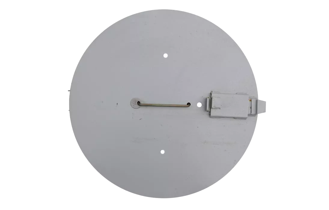 Представляет собой стальную плиту толщиной 3 мм круглой формы, оснащенную задвижкой, которая задвигается в паз корпуса люка, после чего крышка запирается специальным ключом (приобретается дополнительно). Плита крышки покрыта порошковой краской, а замковые элементы и ручка, слоем цинка.