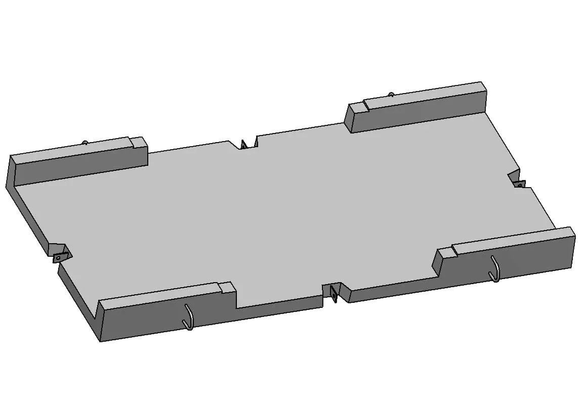 Лоток имеет внутреннюю арматуру – экран, выполненный из стального арматурного прутка в виде сетки с выводами из бетона, для соединения экранов соседних лотков и крышек. Изготавливается из тяжелого бетона: класс прочности – В 22,5; морозостойкость – F 200; водонепроницаемость – W-6.