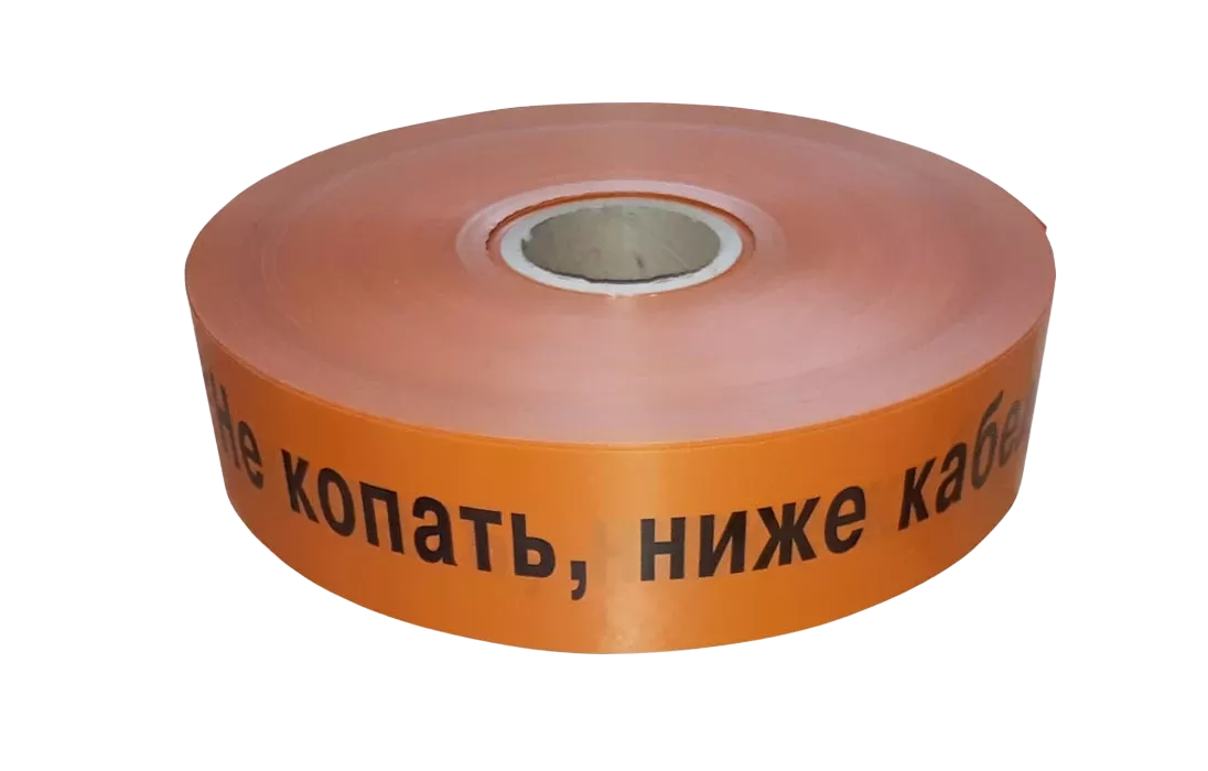 Предназначена для предупреждения механических повреждений линий связи при проведении земляных работ, сигнализирует о проложенных кабельных линиях. Эффект достигается благодаря наличию медного проводника по всей длине полосы, обнаружение которого осуществляется типовым кабелеискателем.
