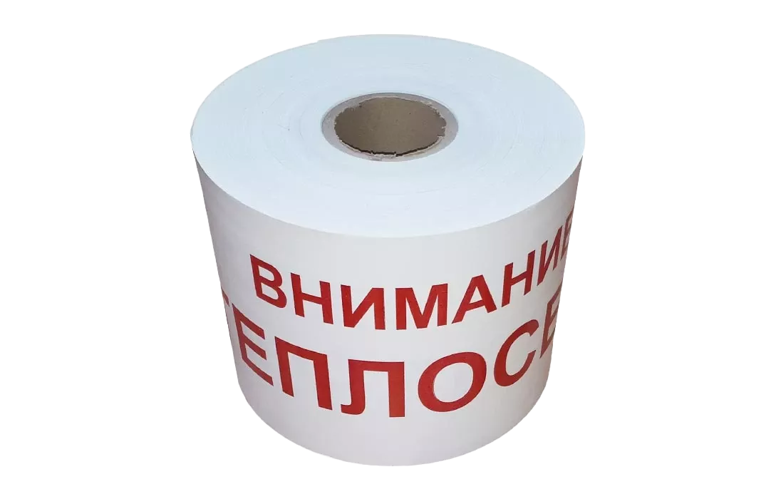 Предназначена для предупреждения механических повреждений теплосети. Эффект достигается благодаря наличию медного проводника по всей длине полосы, обнаружение которого осуществляется типовым кабелеискателем.