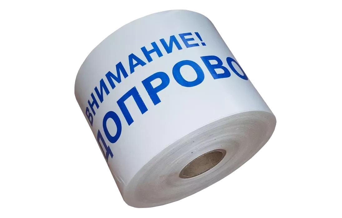 Производится из полиэтилена ПВД. В зависимости от типа ленты имеет различный цвет надписи и ленты. Толщина – 200 мкм.