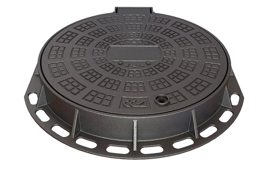 Люк сверхтяжёлого типа из высокопрочного чугуна с шаровидным видом графита «ВЧШГ» состоит из корпуса и крышки.