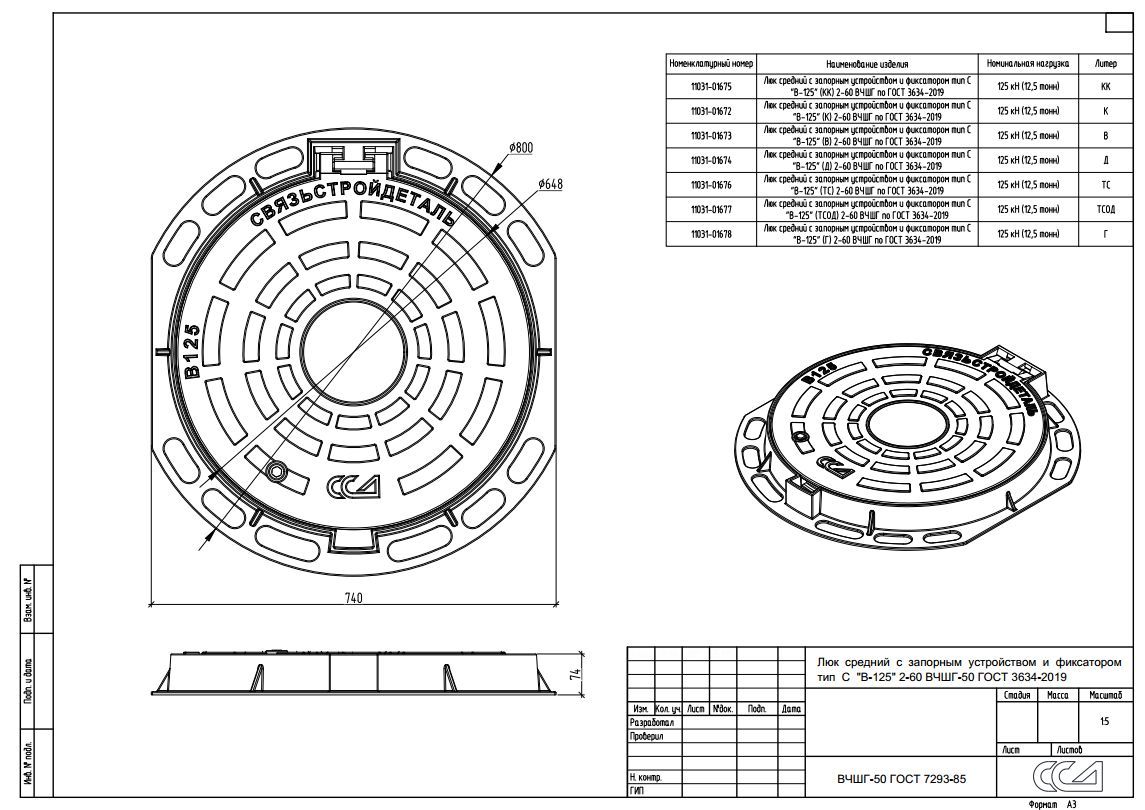 Люк средний с запорным устройством тип С "В-125" (ТС) 2-60 ВЧШГ по ГОСТ 3634
