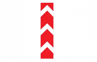 Предназначена для наклеивания на «тело» пластины дорожной «Солдатик» с одной из его сторон. Направление и расположение белых полос на красном фоне соответствует дорожному знаку 8.22.3 (объезд препятствия слева и справа).