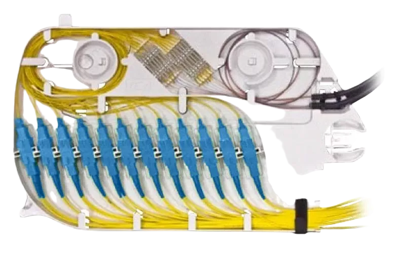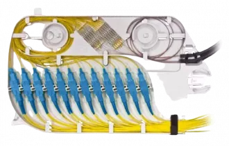 Для осуществления монтажа модуль снимается с конструктива и за счет запаса длины ОВ в транспортных трубках выносится из шкафа на монтажный стол.