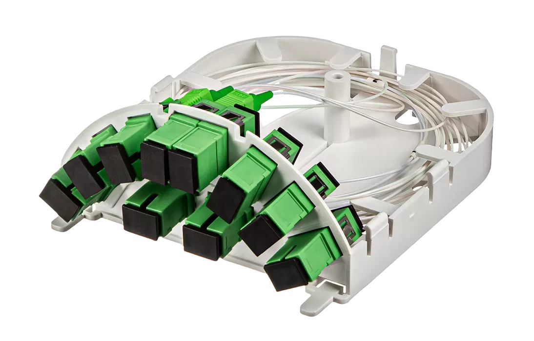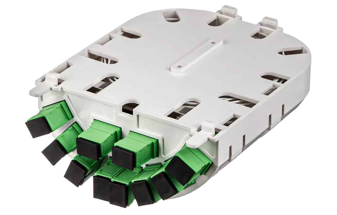 Представляет из себя пластиковый корпус с местами для установки разветвителей и органайзерами для укладки волокон. На лицевой панели расположена адаптерная планка на 10 адаптеров SC типа. Закрывается защитной крышкой, выполненной как и корпус из пластика белого цвета.