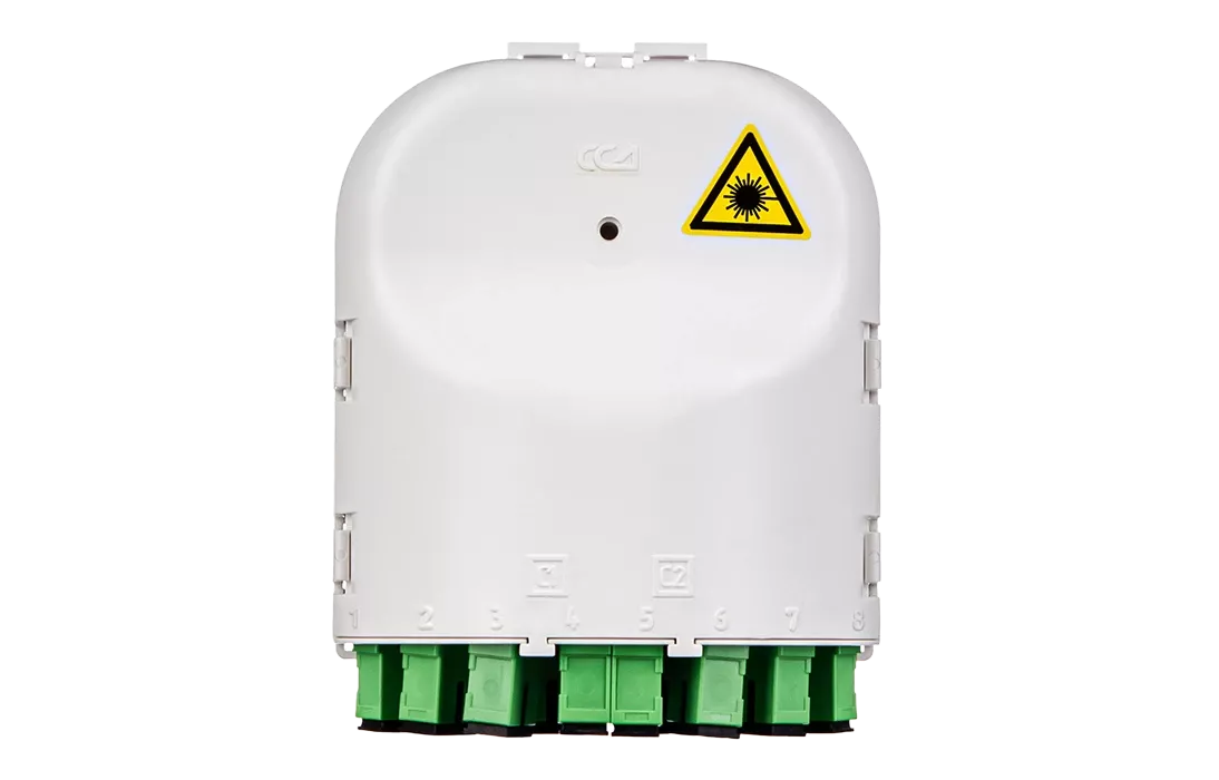 Представляет из себя пластиковый корпус с местами для установки разветвителей и органайзерами для укладки волокон. На лицевой панели расположена адаптерная планка на 10 адаптеров SC типа. Закрывается защитной крышкой, выполненной как и корпус из пластика белого цвета.