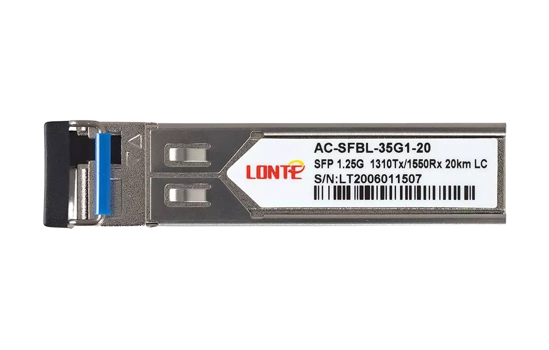 Одноволоконный оптический модуль с форм-фактором SFP для 1G Ethernet, соответствует стандарту 1000Base-BX. Предназначен для работы в одномодовом оптическом волокне (Single-mode fiber, SMF), максимальная дальность 20 км, LC коннектор, рабочая длина волны Tx/Rx: 1310/1550 нм.