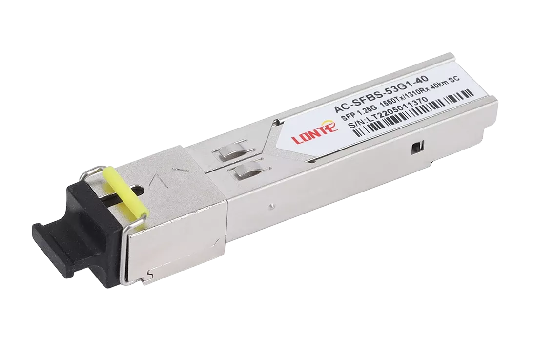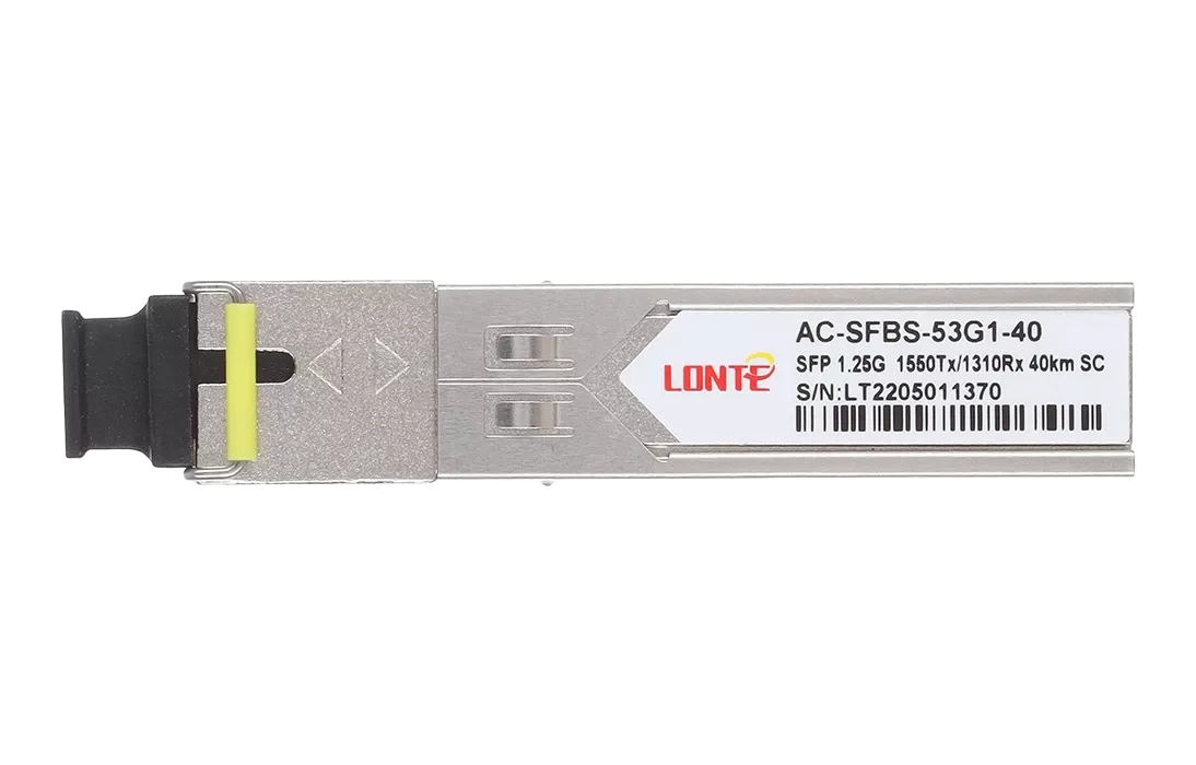 Одноволоконный оптический модуль с форм-фактором SFP для 1G Ethernet, соответствует стандарту 1000Base-BX. Предназначен для работы в одномодовом оптическом волокне (Single-mode fiber, SMF), максимальная дальность 40 км, SC коннектор, рабочие длины волн: Tx1550нм/Rx1310нм