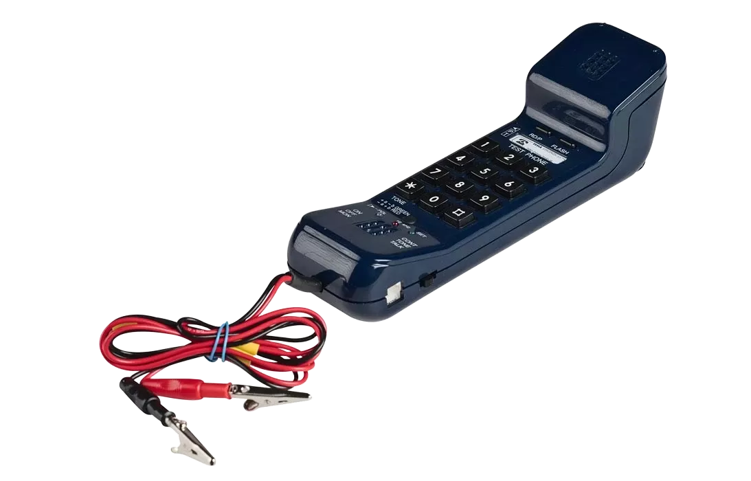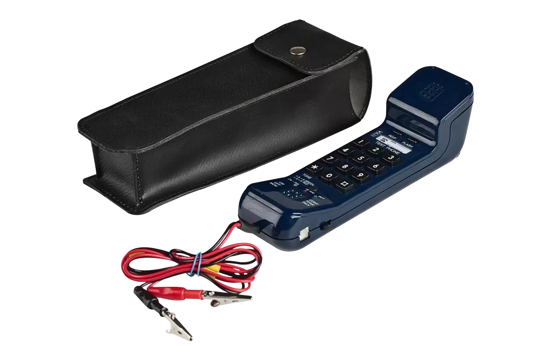 Монтерский телефонный аппарат 4FP 122 40/А Tesla предназначен для специалистов, занимающихся подключением, техническим обслуживанием и ремонтом телефонных линий и оконечного телекоммуникационного оборудования. Данный аппарат предназначен для использования в нормальных климатических условиях. Устройство разрешает тестировать телефонные линии в диапазоне тока питания от 15 до 70 (мА). Индикация отдельных измерений осуществляется прямо на приборе тремя диодами LED. Прибор разрешает контролировать проводимость линии, замыкания линий, передачу низкочастотного сигнала 900 (Гц), полярность линии с помощью двухцветного диода LED, осуществлять световой и акустический контроль наличия тарификационных импульсов (16 кГц), контроль низкочастотного сигнала и мониторинг линии с большим входным сопротивлением. Набор абонентного номера может осуществляться в импульсном режиме (PULSE), частотный режиме (TONE) и смешанном режиме (PULSE - TONE). Долговременное изменение режима набора (PULSE или TONE) разрешает переключатель (P – T), кратковременный переход на частотный режим набора (TONE) осуществится после нажатия кнопки (*). Прибор разрешает повтор последнего набранного номера и вкладывание паузы между сериями (RD/P). Держатель, прочно укрепленный на крышке прибора, разрешает повесить его на монтажную стойку и с помощью карабина (не является составной частью поставки) прикрепленного к держателю, прибор можно повесить на ремень механика или выступ оборудования. Кожаный футляр предназначен для переноса прибора в нерабочем состоянии. Прибору для работы необходимо подключение к батарее 9 В типа 6F22 – батарея не является составной частью поставки прибора. Батарея имеет предназначенное для нее пространство внутри трубки.