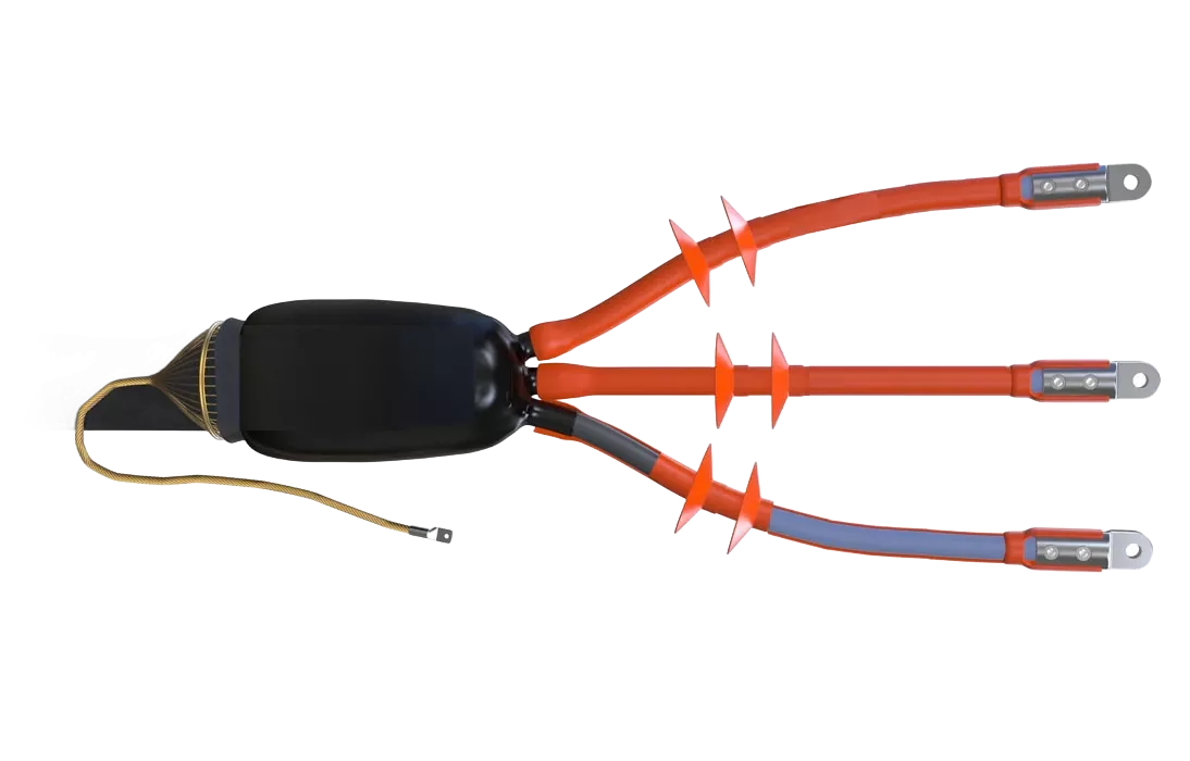 В составе муфты применяются трубки стресс-контроля снижающие риск пробоя изоляции на срезе полупроводящего слоя и специальный герметик со свойствами выравнивания напряженности электрического поля. Использование изолирующей антитрекинговой трубки и изолятора снижает риск пробоя по поверхности изоляции.