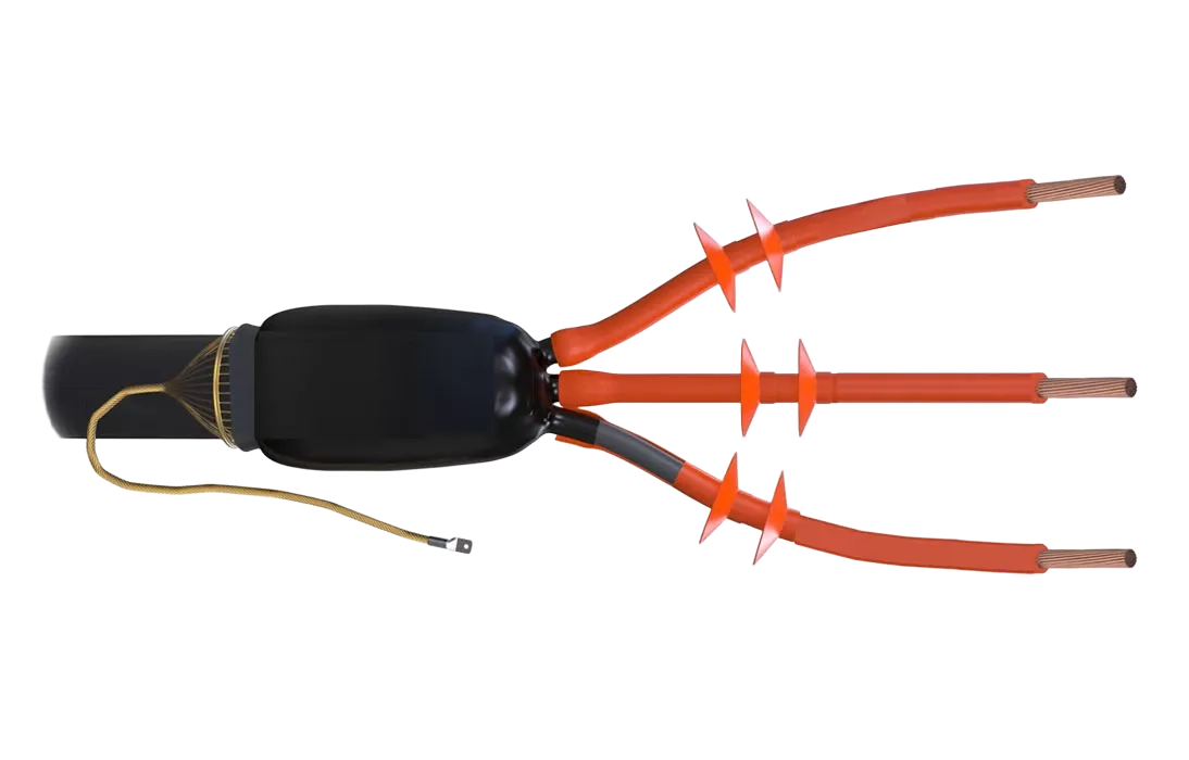 В составе муфты применяются трубки стресс-контроля снижающие риск пробоя изоляции на срезе полупроводящего слоя и специальный герметик со свойствами выравнивания напряженности электрического поля. Использование изолирующей антитрекинговой трубки и изолятора снижает риск пробоя по поверхности изоляции.