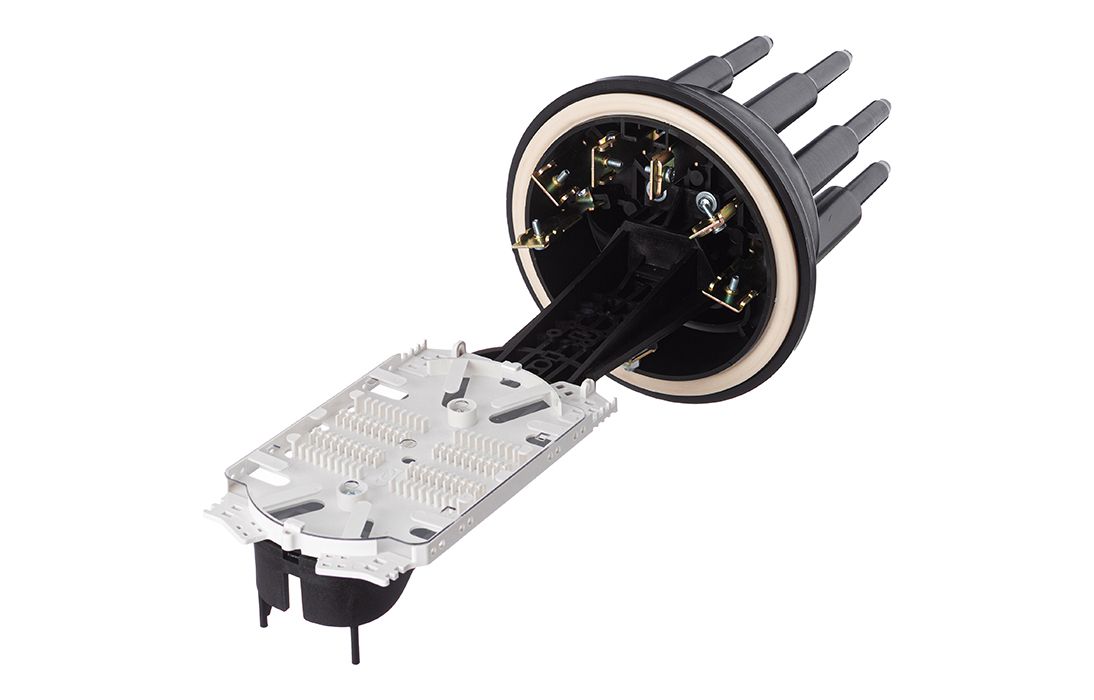 Муфта выполнена из качественной пластмассы и имеет пыле-влагозащищенную тупиковую конструкцию (ввод ОК и вывод дроп-кабелей производится с одной стороны), с уплотнительной прокладкой на стыке кожуха с оголовником.