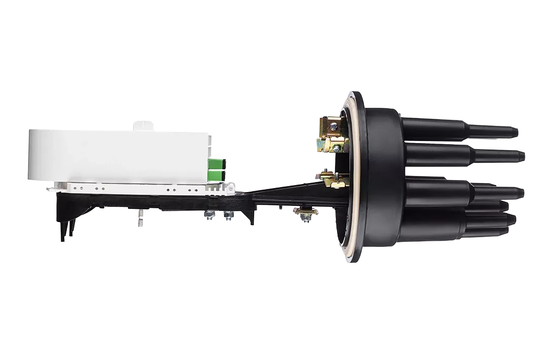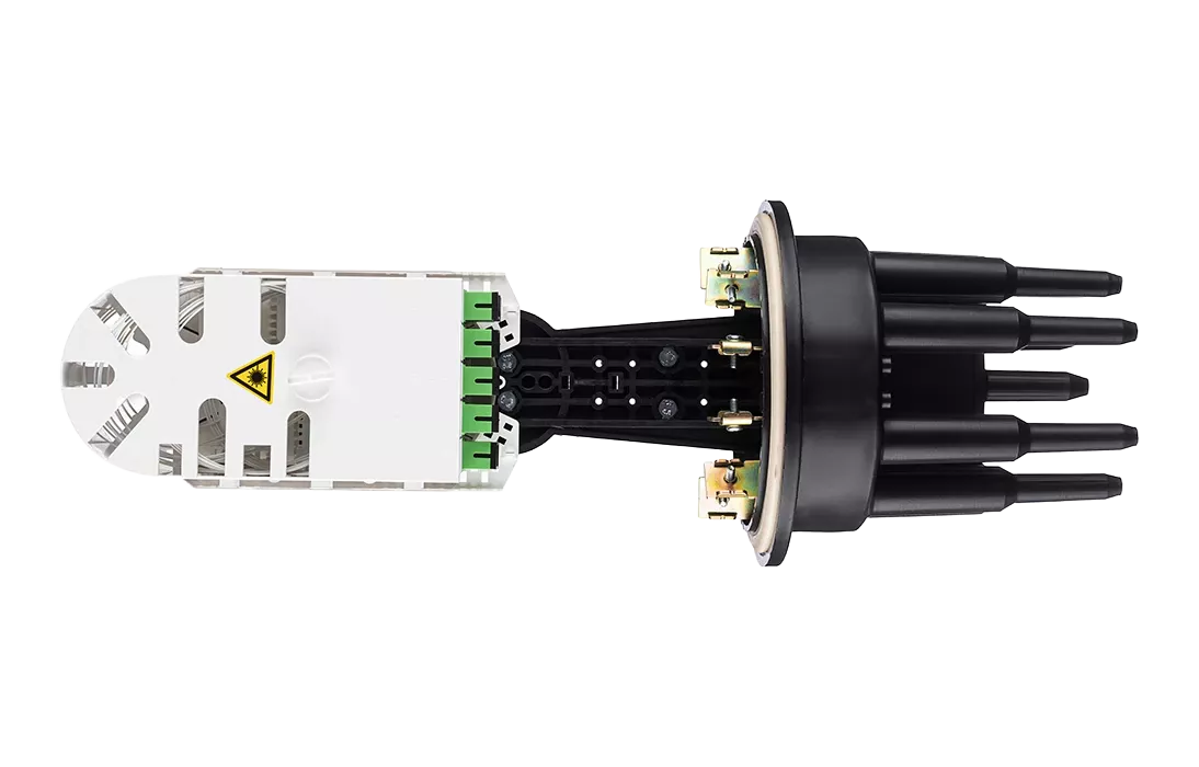 Муфта выполнена из качественной пластмассы и имеет пыле-влагозащищенную тупиковую конструкцию (ввод ОК и вывод дроп-кабелей производится с одной стороны), с уплотнительной прокладкой на стыке кожуха с оголовником.