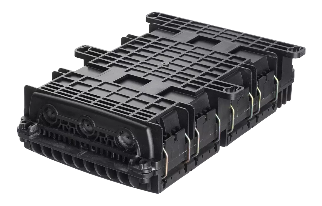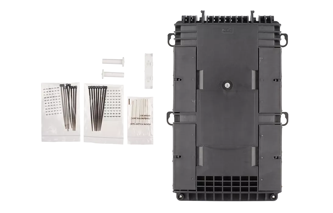 Выполнена из пластмассы и имеет пыле-брызгозащищенную тупиковую конструкцию (ввод ОК и вывод абонентских дроп-кабелей производится с одной стороны).