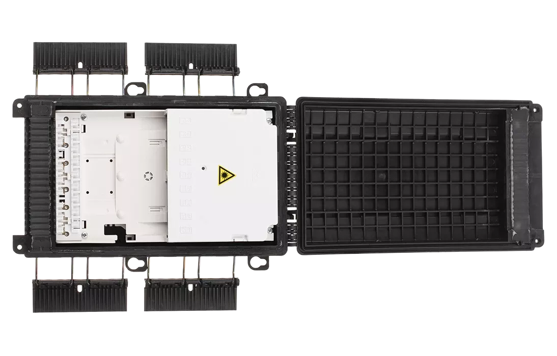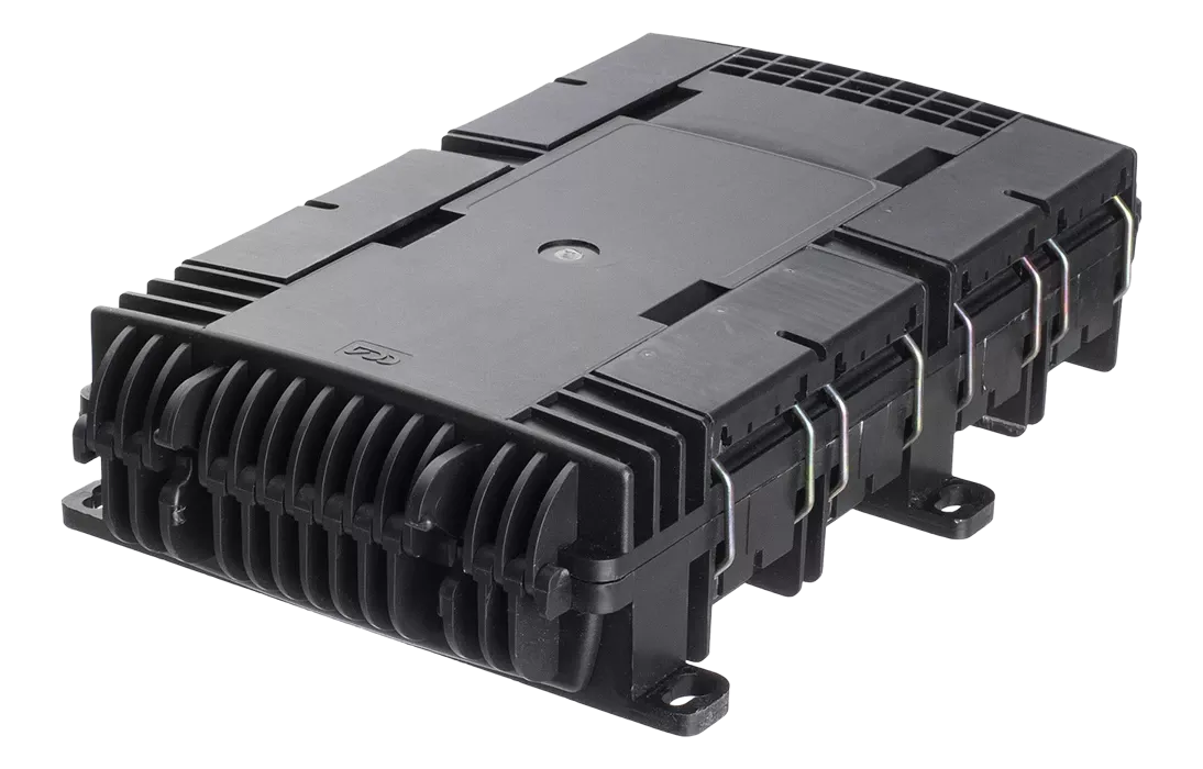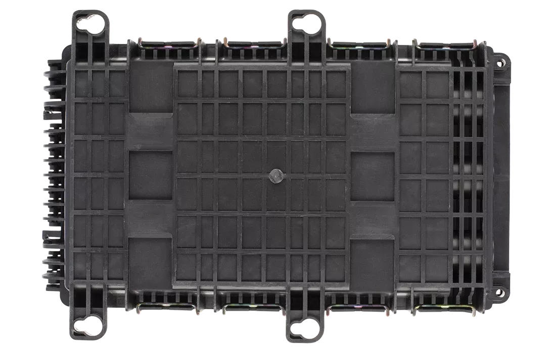 - пылезащищенный вывод до 16 дроп-кабелей круглого профиля диаметром до 5 мм или прямоугольного профиля типа «бабочка».