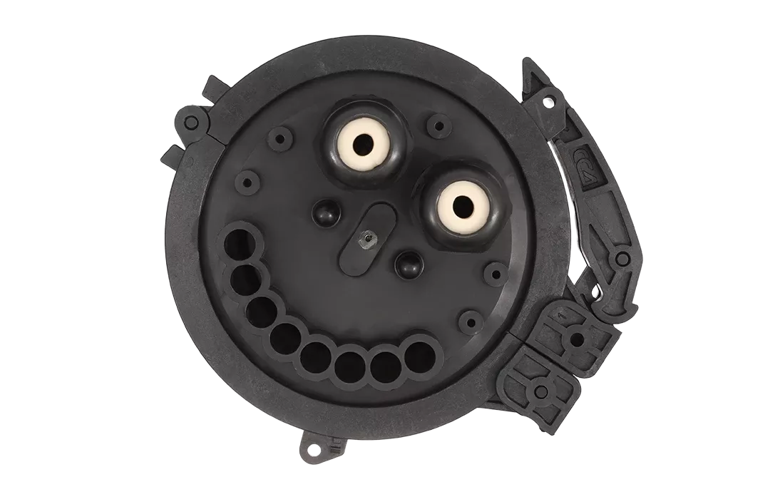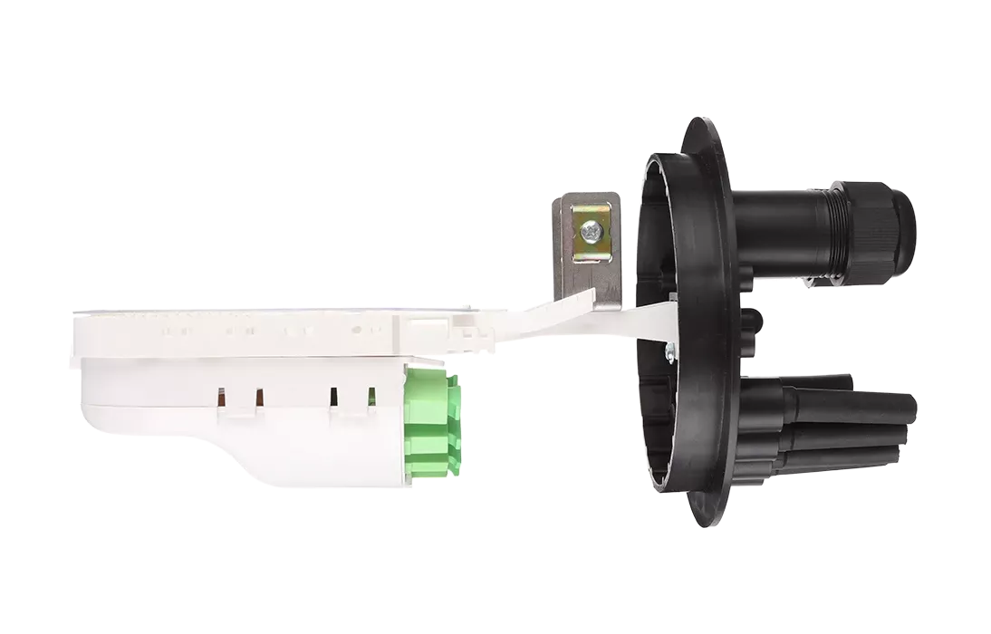 Герметизация вводов ОК осуществляется с применением резьбовых фитингов, а выводы дроп-кабелей герметизируются специальными эластичными пробками. В комплект поставки входят пробки для плоского кабеля, для круглого - приобретаются отдельно.