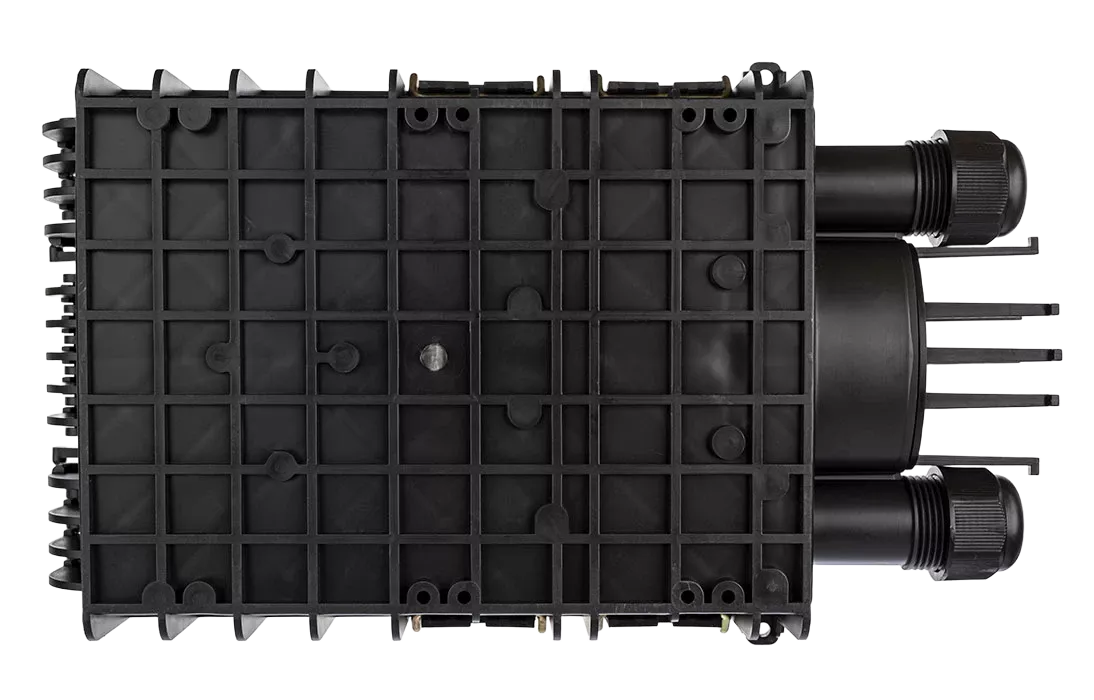 - пылезащищенный вывод до 8 дроп-кабелей круглого профиля диаметром до 5 мм или прямоугольного профиля типа «бабочка».
