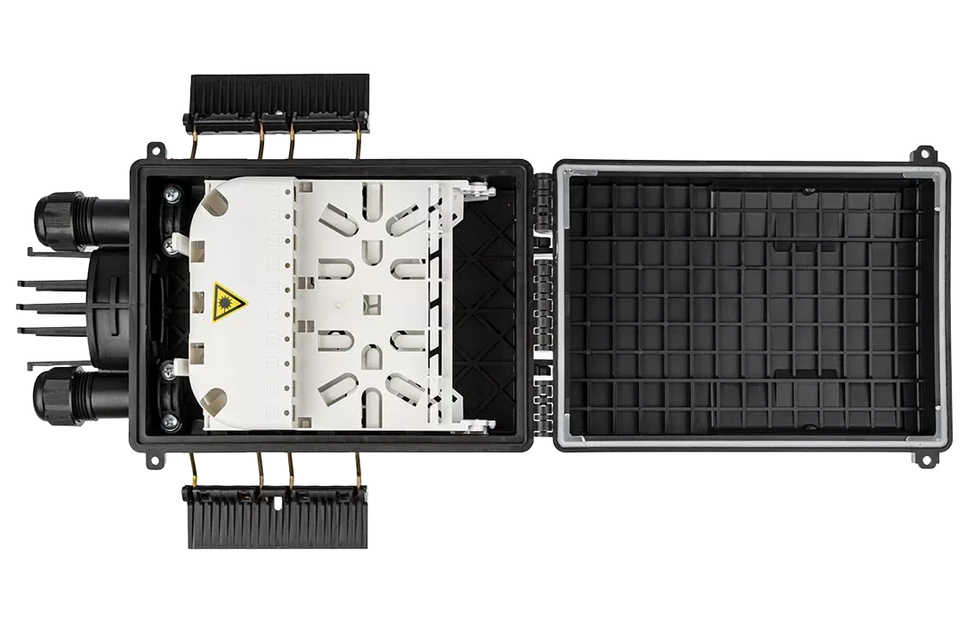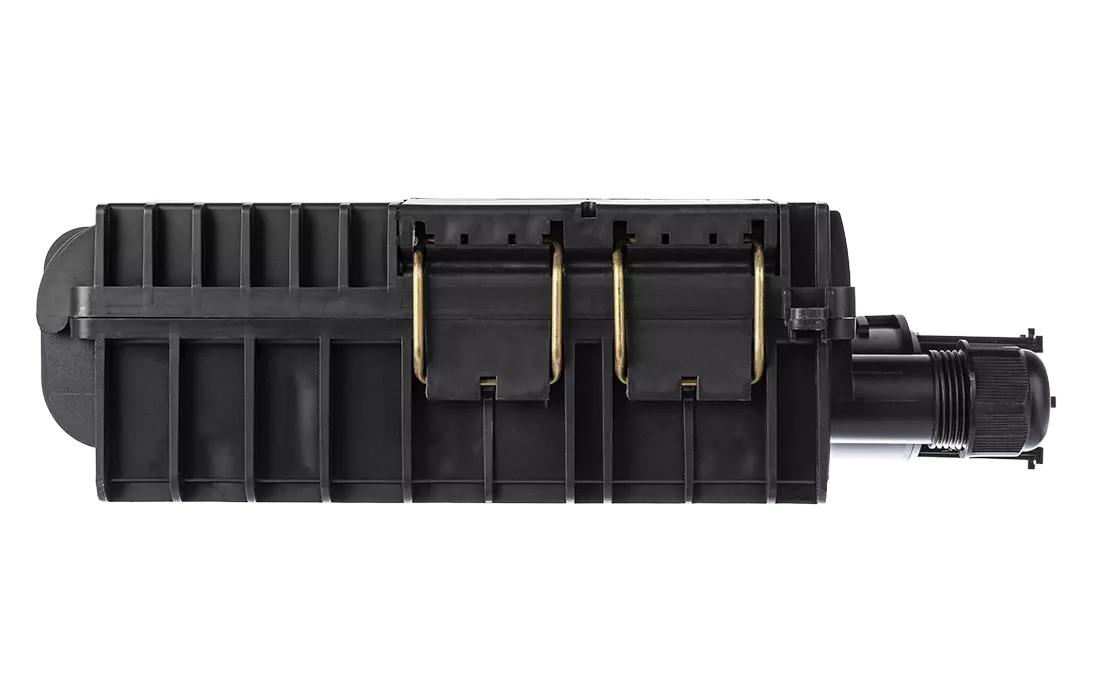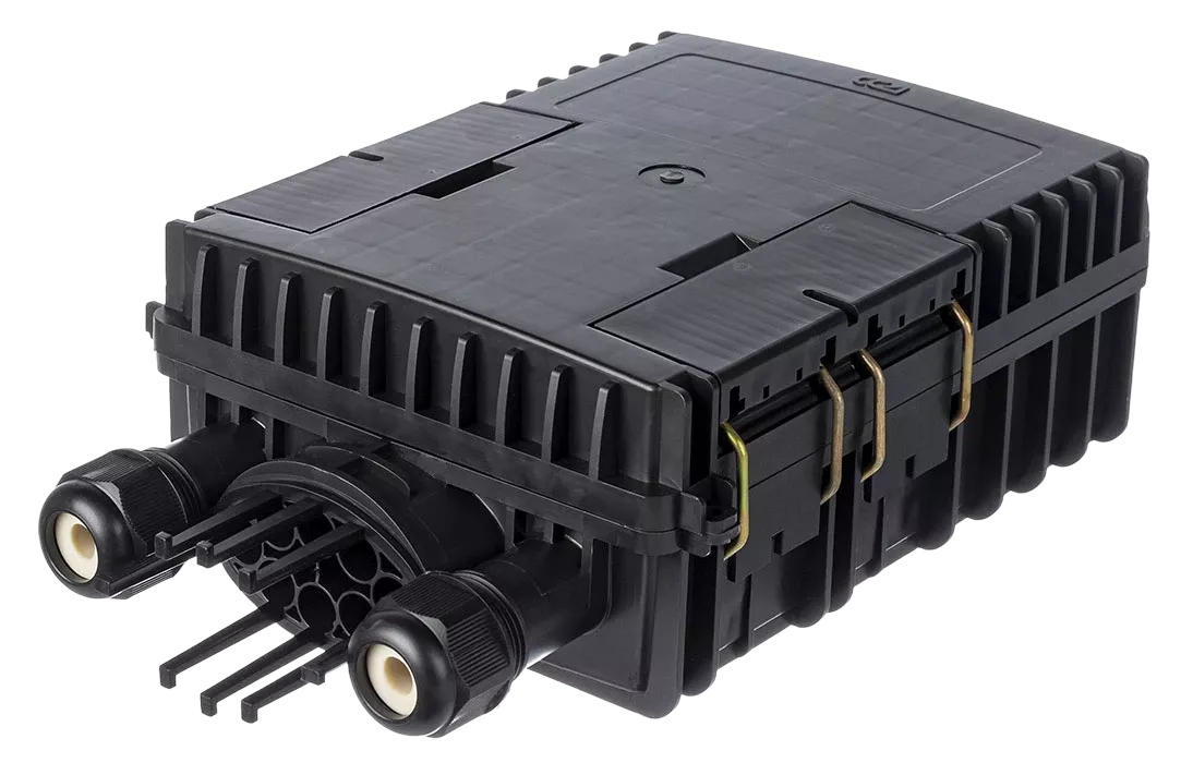 Выполнена из пластмассы и имеет пыле-брызгозащищенную конструкцию (ввод ОК и вывод абонентских дроп-кабелей производится с одной стороны).