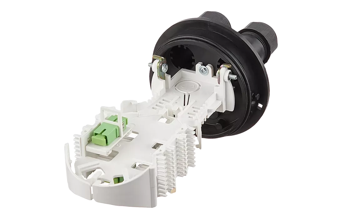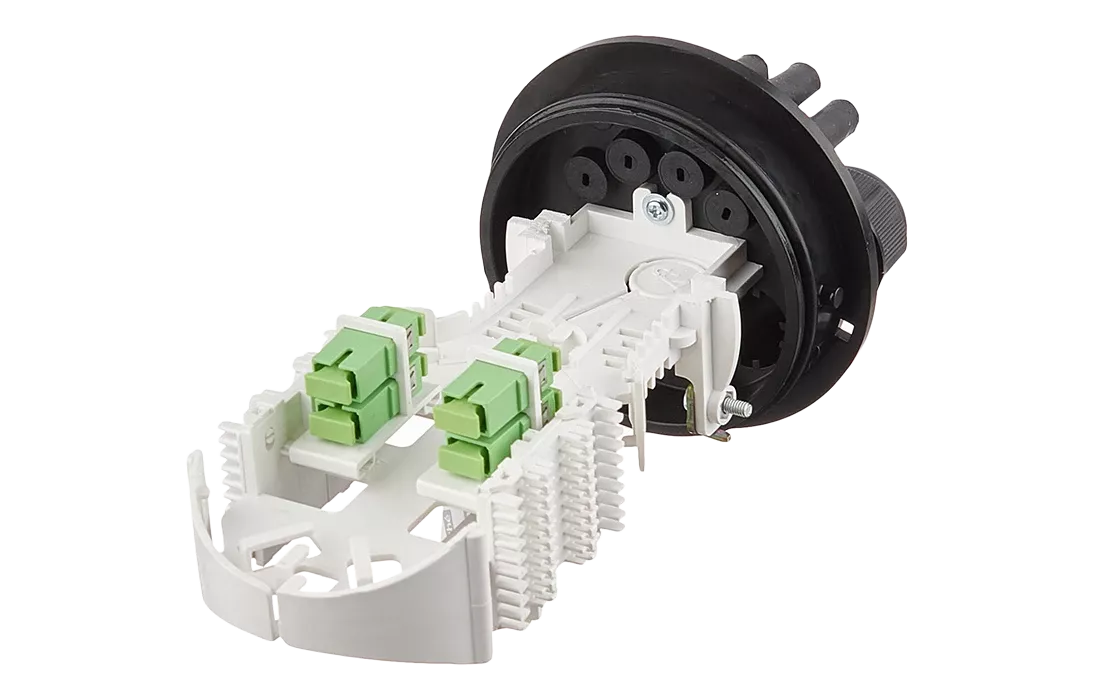 В обновлённую конструкцию муфты в комплект поставки уже входят 3 навесных ложемент Л2 SC-Ц8 для установки до пяти адаптеров типа SC и навесной ложемент Л1-СП-Ц8 для размещения разветвителя 1х4 -PLC -SM/0,9 -1,0 м-SC/APC.