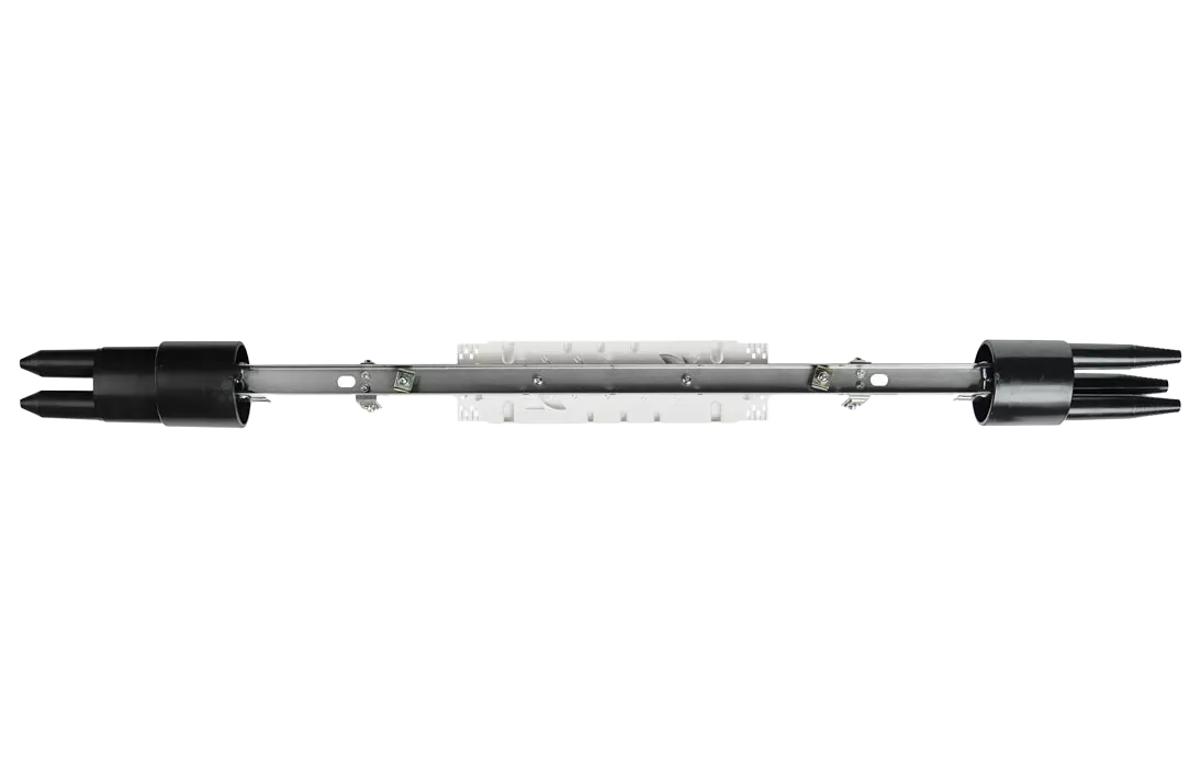 Способ герметизации вводов кабелей, осуществляется с помощью термоусаживаемых трубок ТУТ. Круглые патрубки на оголовнике муфты изначально герметичны и имеют ступенчатую форму с разными диаметрами. Срезая патрубок в определенном месте можно подобрать отверстие максимально близкое к диаметру вводимого кабеля. Таким образом, исключается излишнее натяжение ТУТ после усадки при вводе относительно тонких кабелей. Все патрубки муфты оснащены также индивидуальными узлами крепления ЦСЭ.