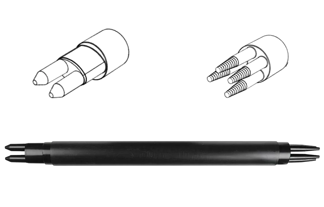 Способ герметизации вводов кабелей, осуществляется с помощью термоусаживаемых трубок ТУТ. Круглые патрубки на оголовнике муфты изначально герметичны и имеют ступенчатую форму с разными диаметрами. Срезая патрубок в определенном месте можно подобрать отверстие максимально близкое к диаметру вводимого кабеля. Таким образом, исключается излишнее натяжение ТУТ после усадки при вводе относительно тонких кабелей. Все патрубки муфты оснащены также индивидуальными узлами крепления ЦСЭ.