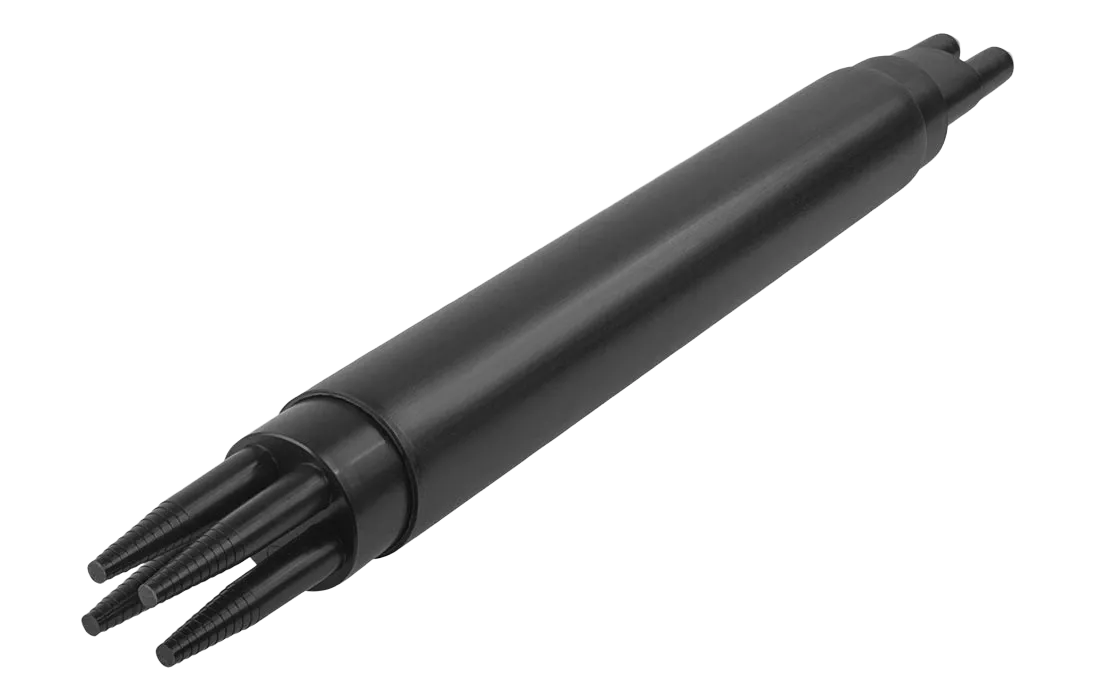 Способ герметизации вводов кабелей, осуществляется с помощью термоусаживаемых трубок ТУТ. Круглые патрубки на оголовнике муфты изначально герметичны и имеют ступенчатую форму с разными диаметрами. Срезая патрубок в определенном месте можно подобрать отверстие максимально близкое к диаметру вводимого кабеля. Таким образом, исключается излишнее натяжение ТУТ после усадки при вводе относительно тонких кабелей. Все патрубки муфты оснащены также индивидуальными узлами крепления ЦСЭ.