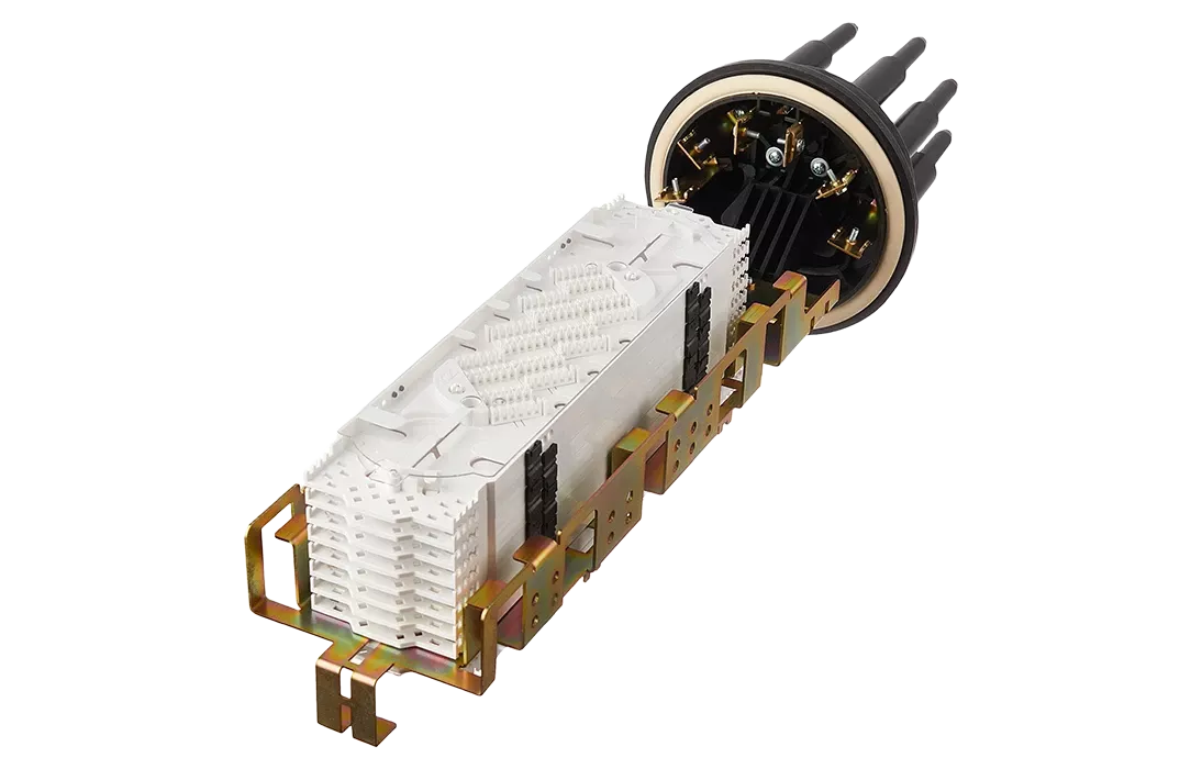 Предназначена для монтажа подвесных самонесущих ОК и оптических кабелей с вынесенным силовым элементом типа «8», а также городских кабелей любых конструкций, в том числе и с броней из стальной гофрированной ленты. В муфте предусмотрен овальный ввод для транзитной петли оптических модулей без разрезания. Выкладка петли модулей осуществляется на лотке с противоположной стороны от кассет.
