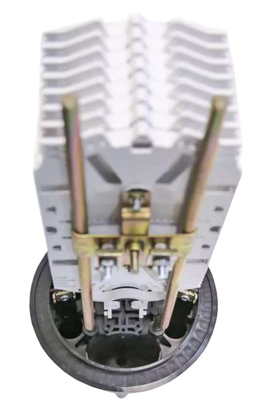Способ герметизации вводов кабелей, осуществляется с помощью термоусаживаемых трубок ТУТ. Круглые патрубки на оголовнике муфты изначально герметичны и имеют ступенчатую форму с разными диаметрами. Срезая патрубок в определенном месте можно подобрать отверстие максимально близкое к диаметру вводимого кабеля. Таким образом, исключается излишнее натяжение ТУТ после усадки при вводе относительно тонких кабелей. Все патрубки муфты оснащены также индивидуальными узлами крепления ЦСЭ.