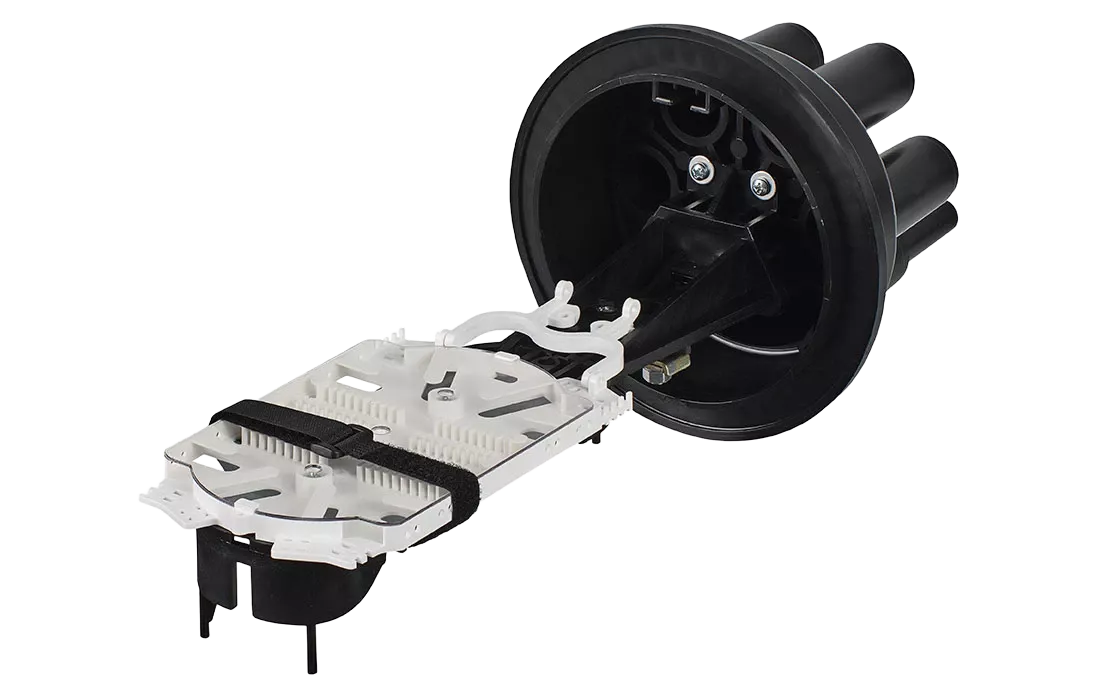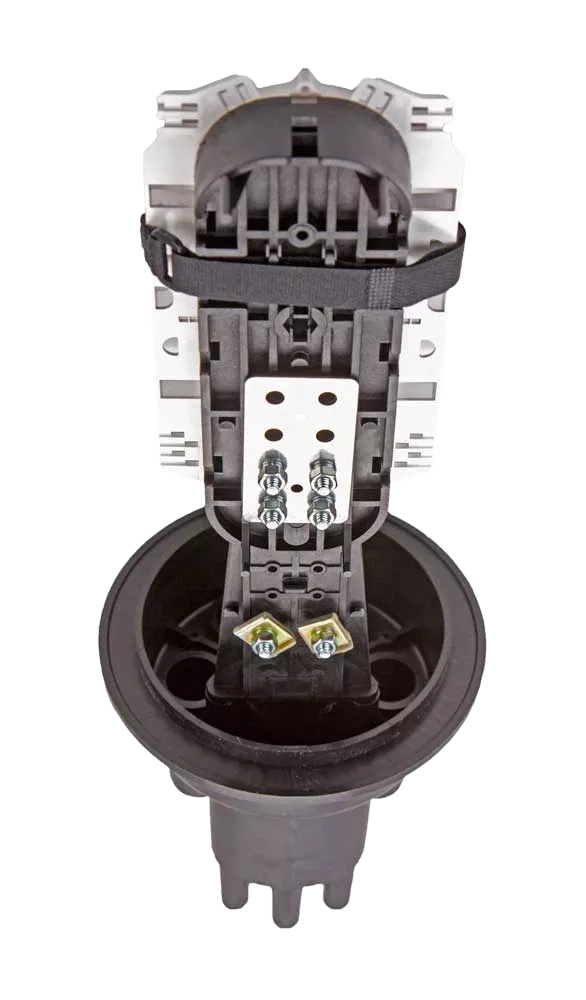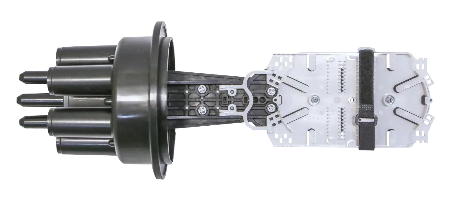 Предназначена для монтажа любого оптического кабеля (кроме подводных). Достигается это за счет использования специальных кабельных вводов, каждый из которых в свою очередь охватывает определенную группу кабелей. В муфте предусмотрен овальный ввод для транзитной петли оптических модулей без разрезания. Выкладка петли модулей осуществляется на лотке с противоположной стороны от кассет.
